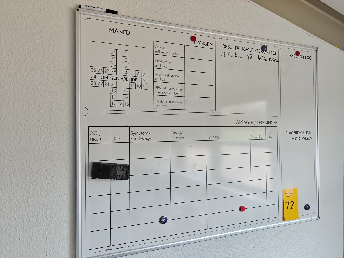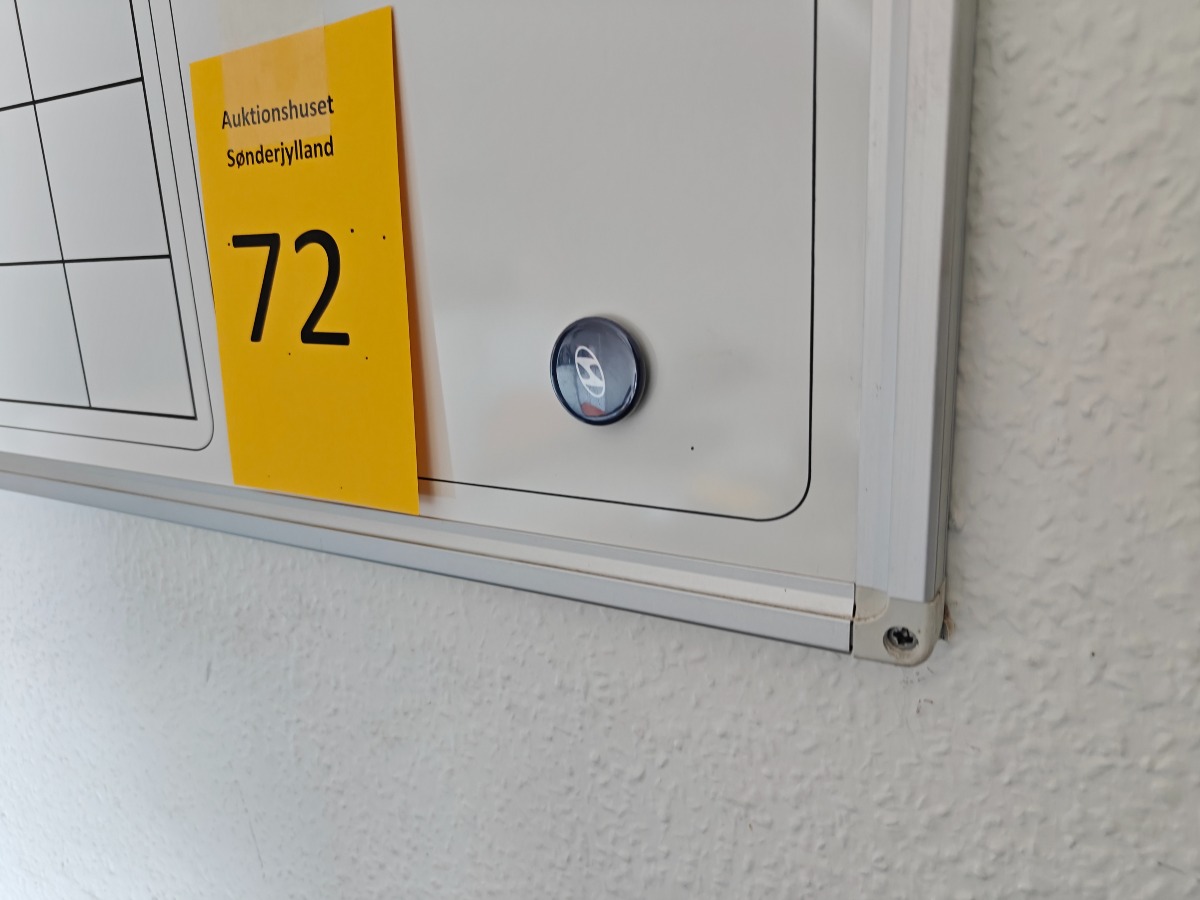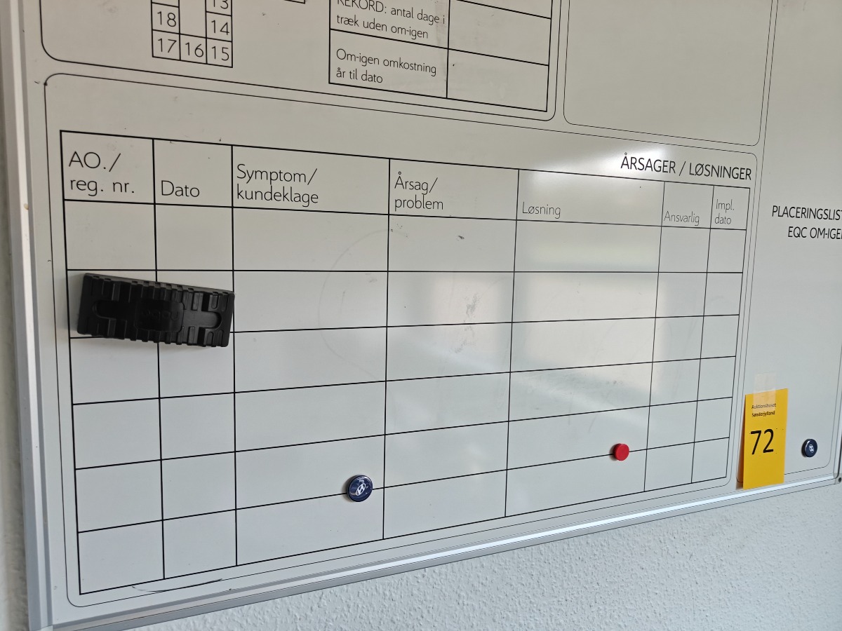 Whiteboardtavle med diverse skemaer til opgave-løsning. Det måler 122 x 93 cm. Brugt.