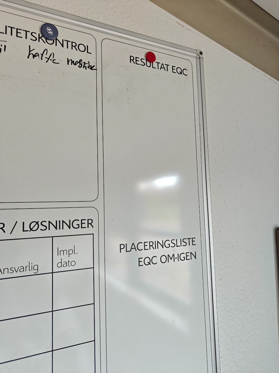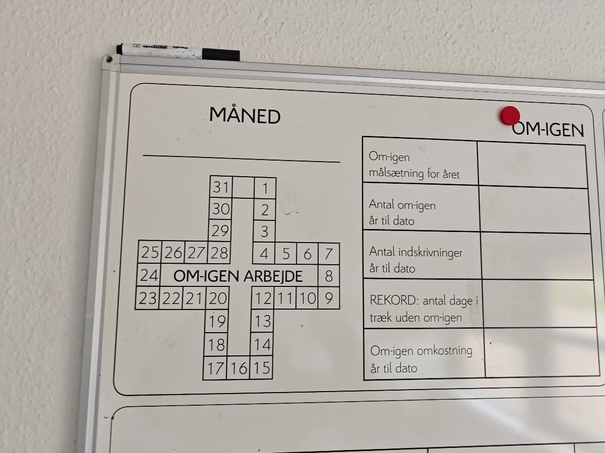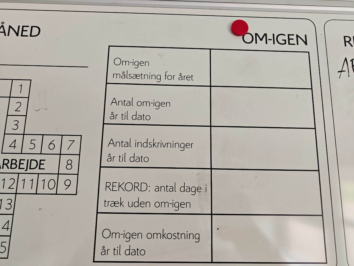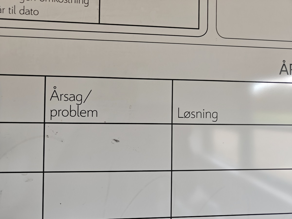 Whiteboardtavle med diverse skemaer til opgave-løsning. Det måler 122 x 93 cm. Brugt.