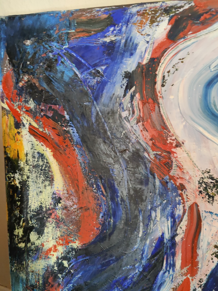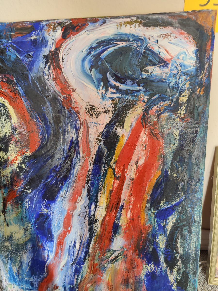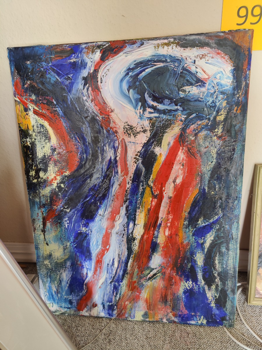 Engsig. Abstrakt motiv. Akryl på lærred. Sign. på begge sider af lærred. 82 x 60 cm.