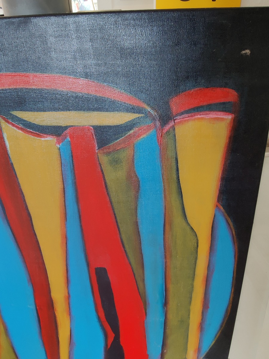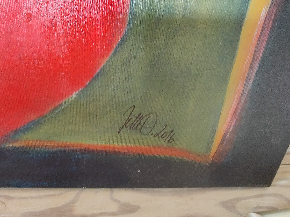 Jette O. Figurkomposition. Olie på lærred. Sign. Jette O. 2016. 101 x 70 cm.
