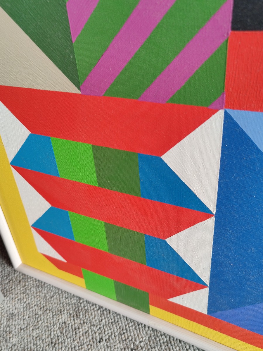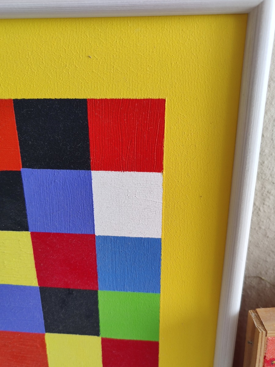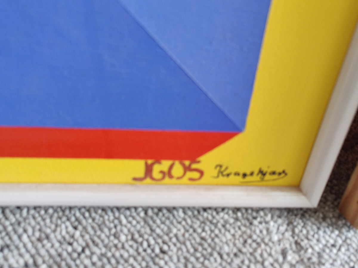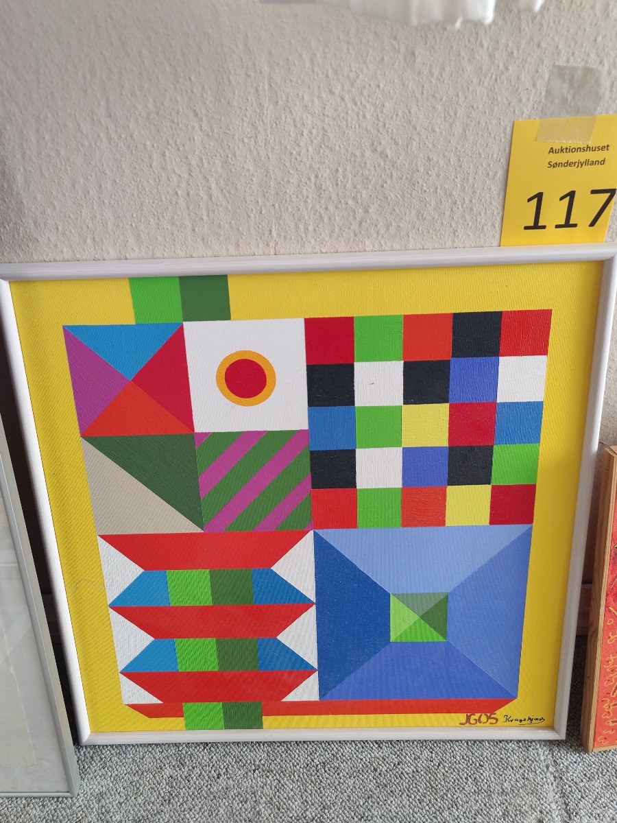 Johnny Kragekjær Kubistisk motiv. Akryl på lærred. Sign. JG 05 Kragekjær. 63 x 63 cm.