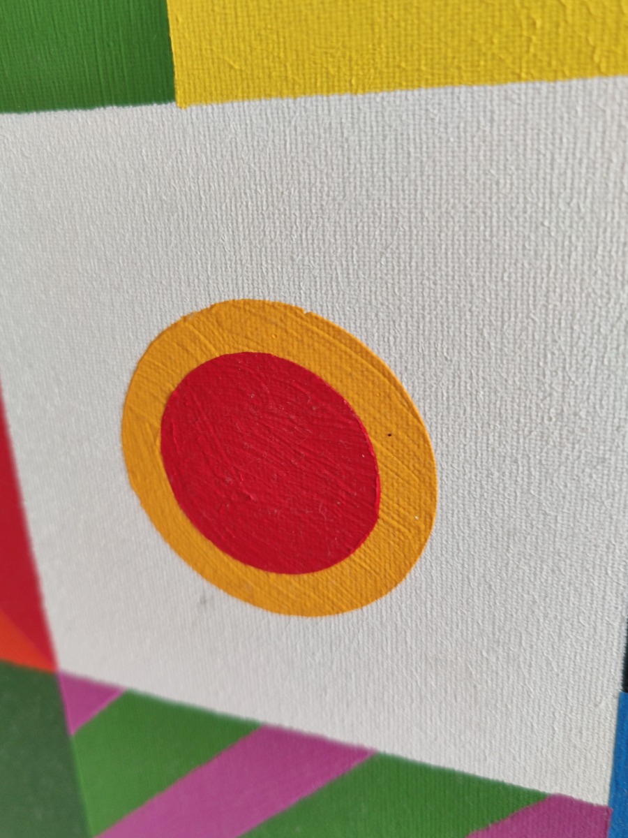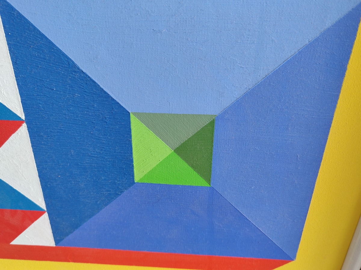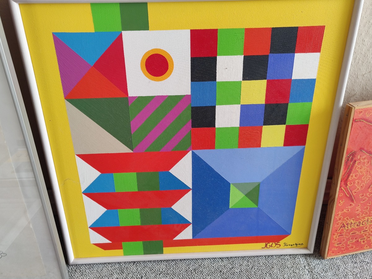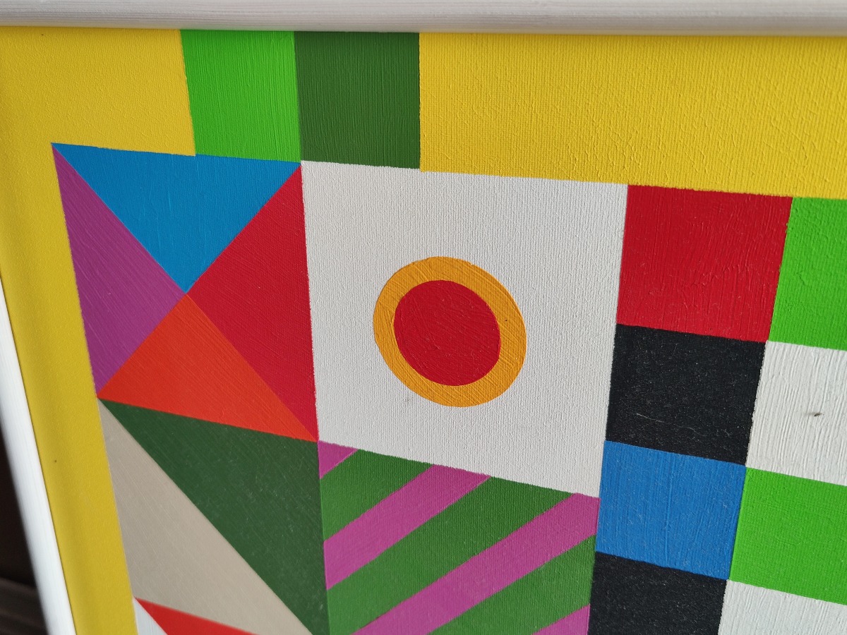 Johnny Kragekjær Kubistisk motiv. Akryl på lærred. Sign. JG 05 Kragekjær. 63 x 63 cm.