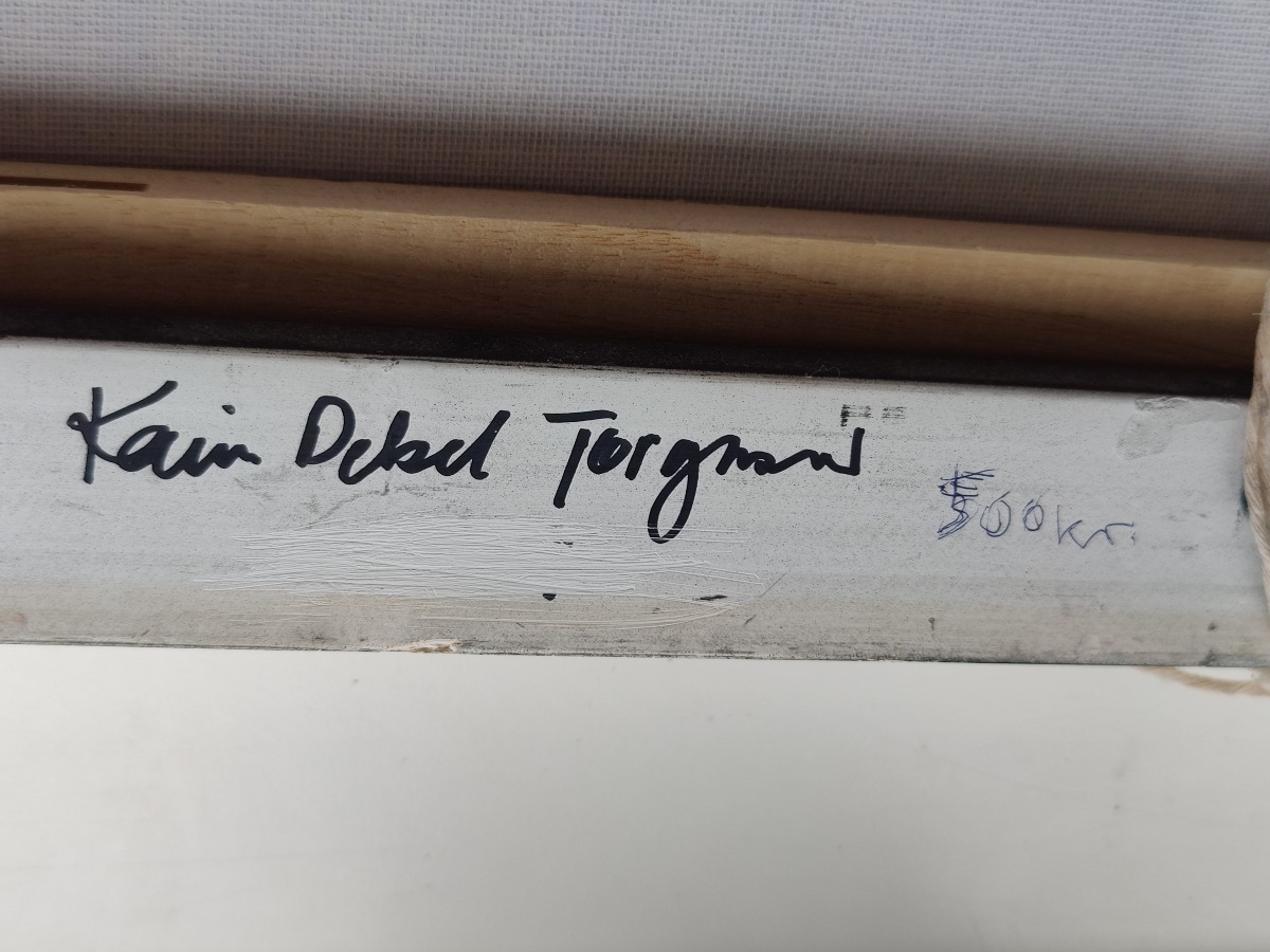 Karin Debel Jørgensen. Landskab. Akryl på lærred. Sign. på lærred med monogram og med navn på bagside. 54 x 54 cm.