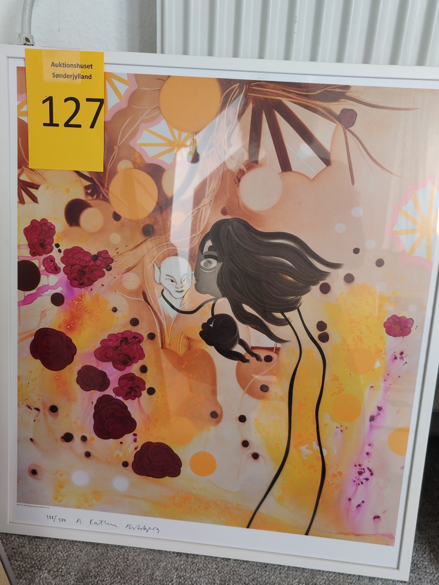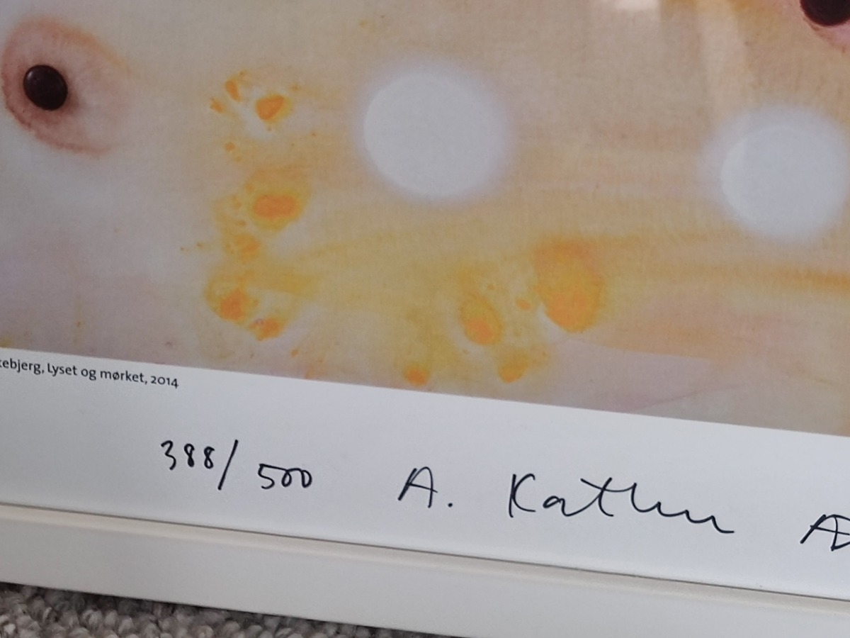 Katrine Ærtebjerg. Plakattryk 388/500 Titel: Lyset og mørket", 2014. Nummereret og signeret med tusch. 388/500. 71 x 62 cm.