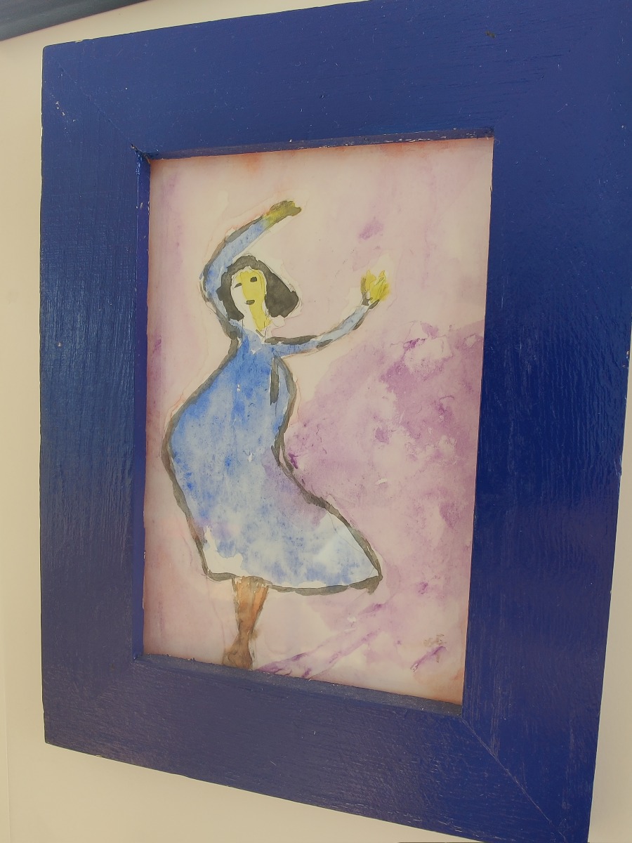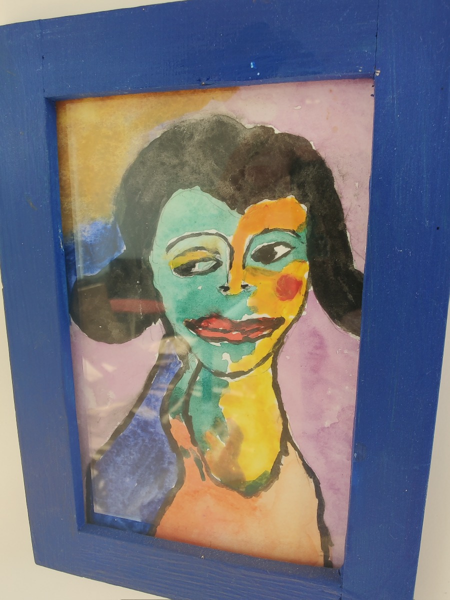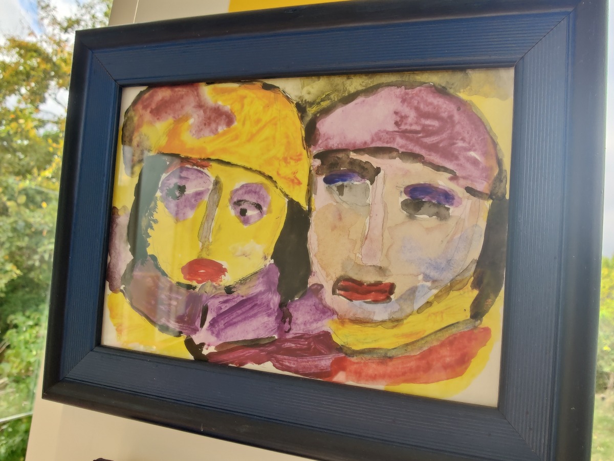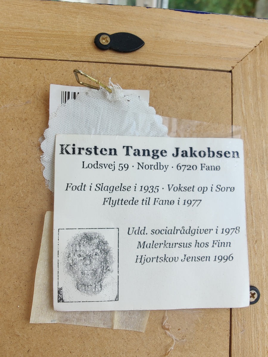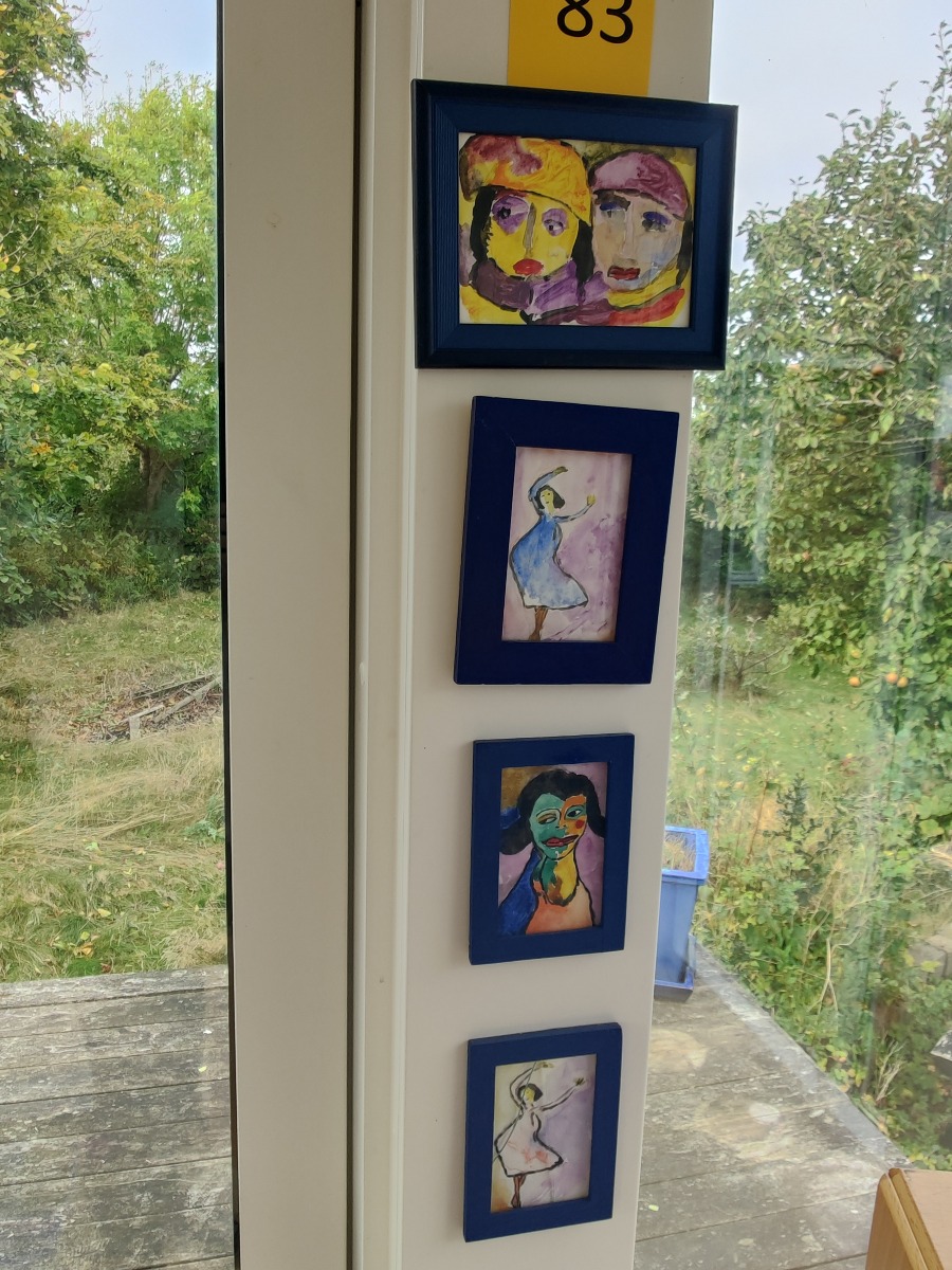 Kirsten Tange Jakobsen. 4 små portrætter. Akvareller. Fanøkunstner. Mål for alle. 20 x 15 cm.