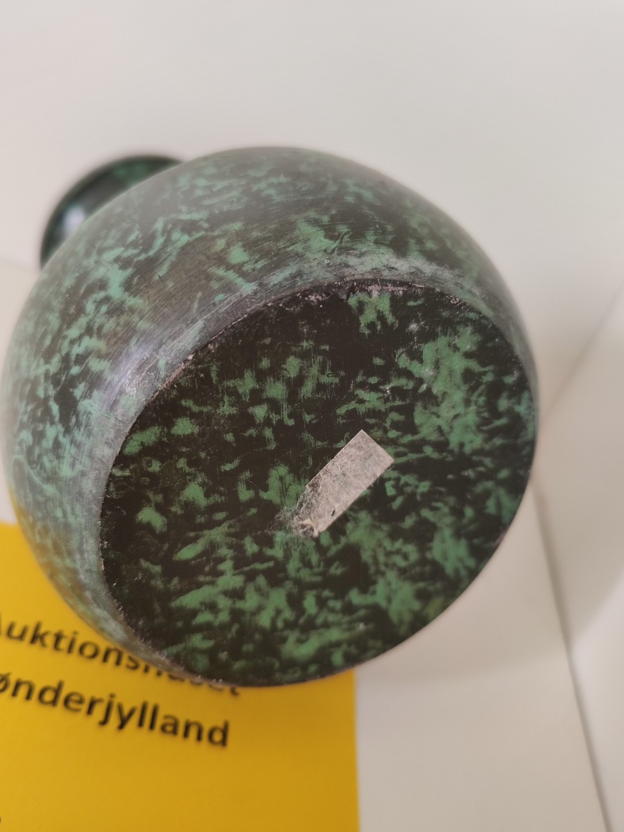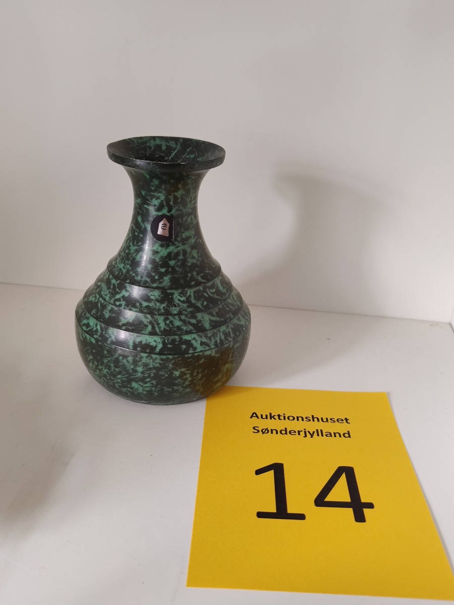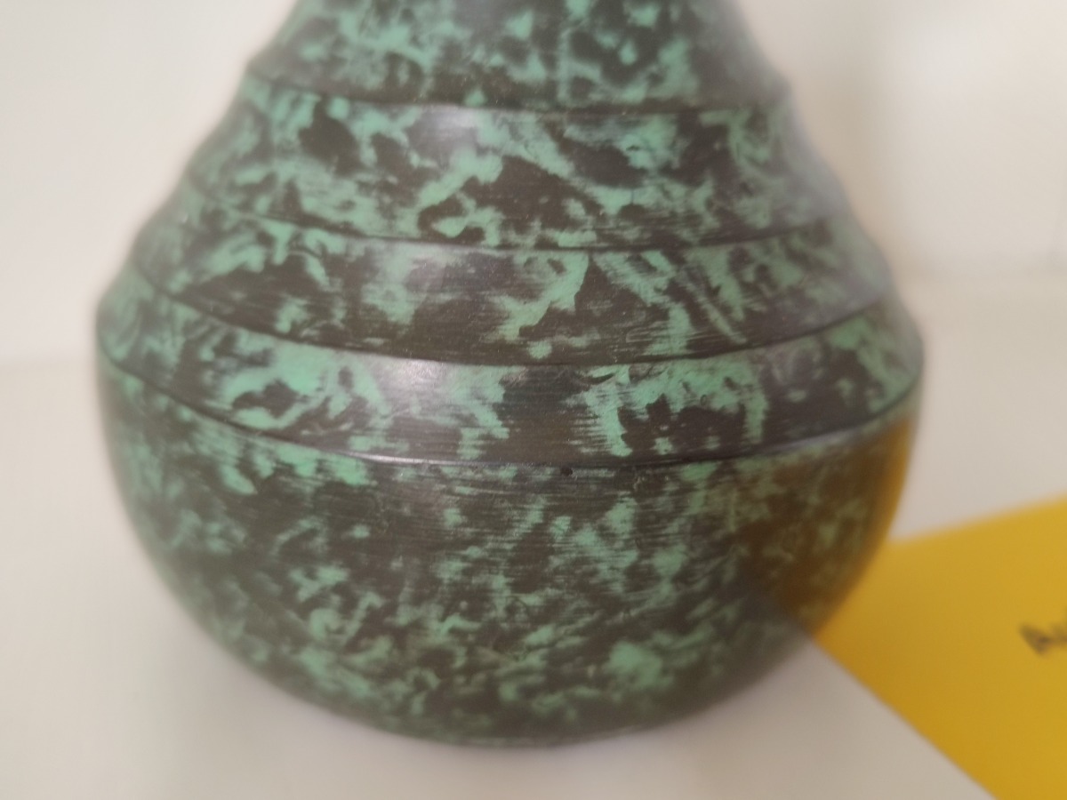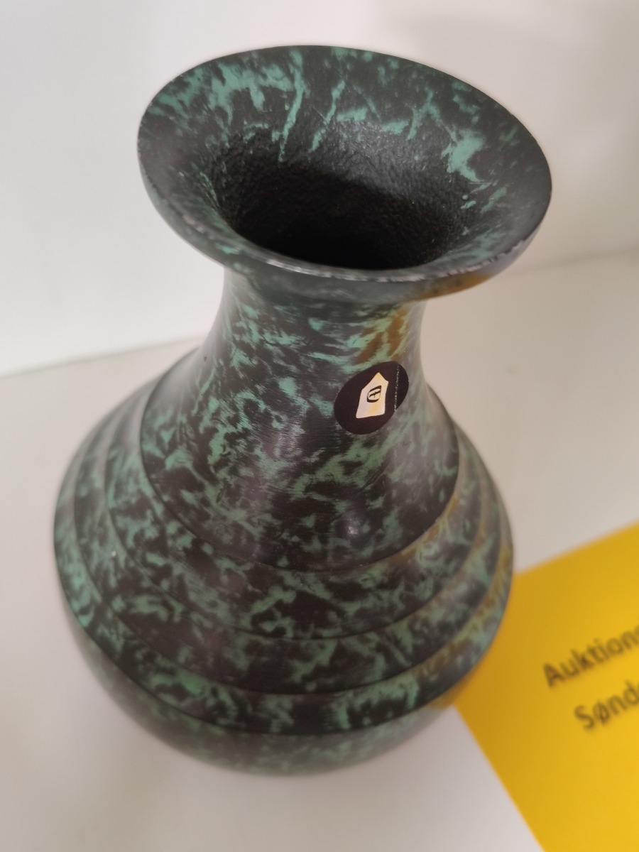Lille vase af metal med tofarvet overfladebehandling. H. 13,5 Ø. 11 cm.