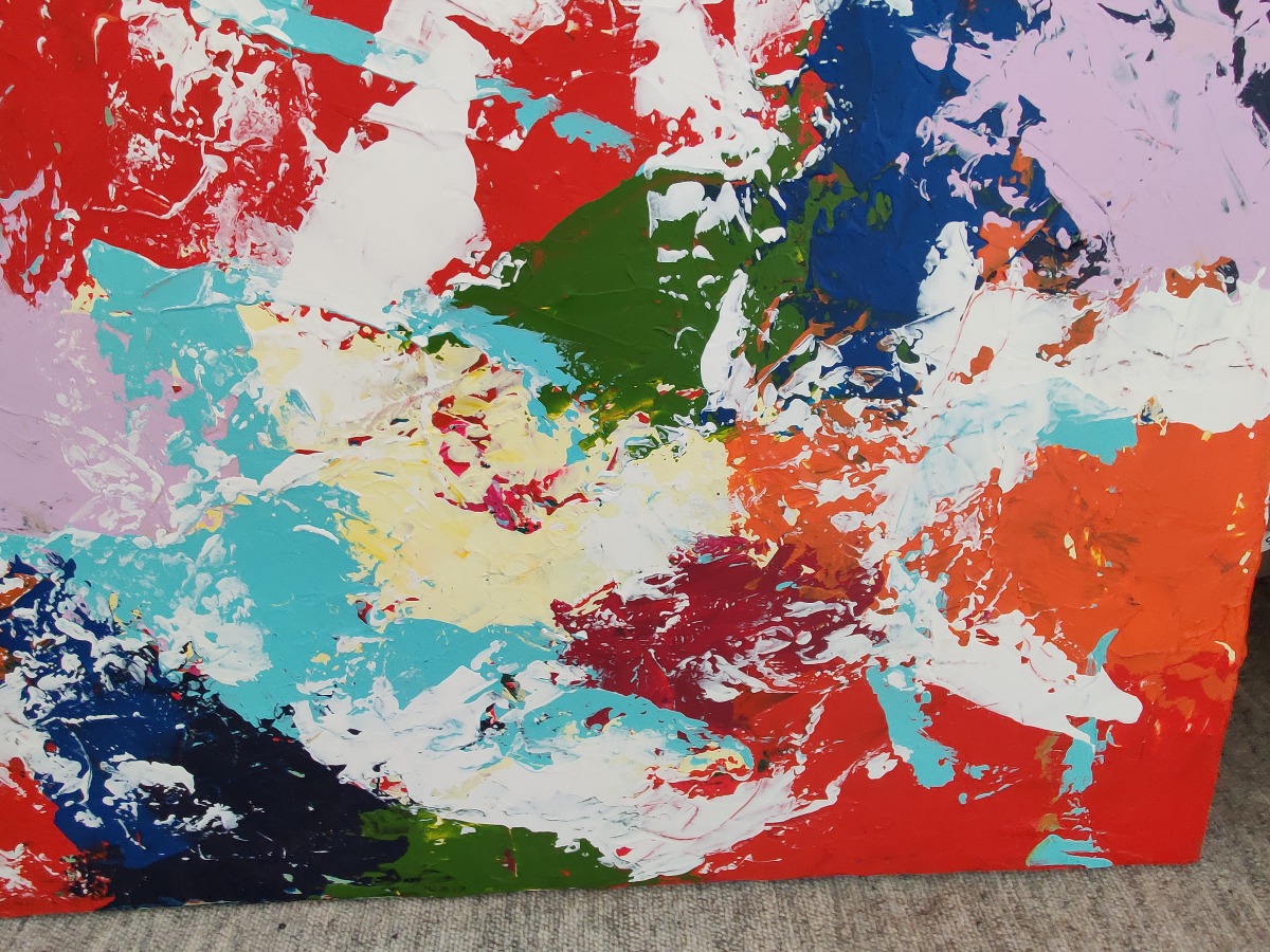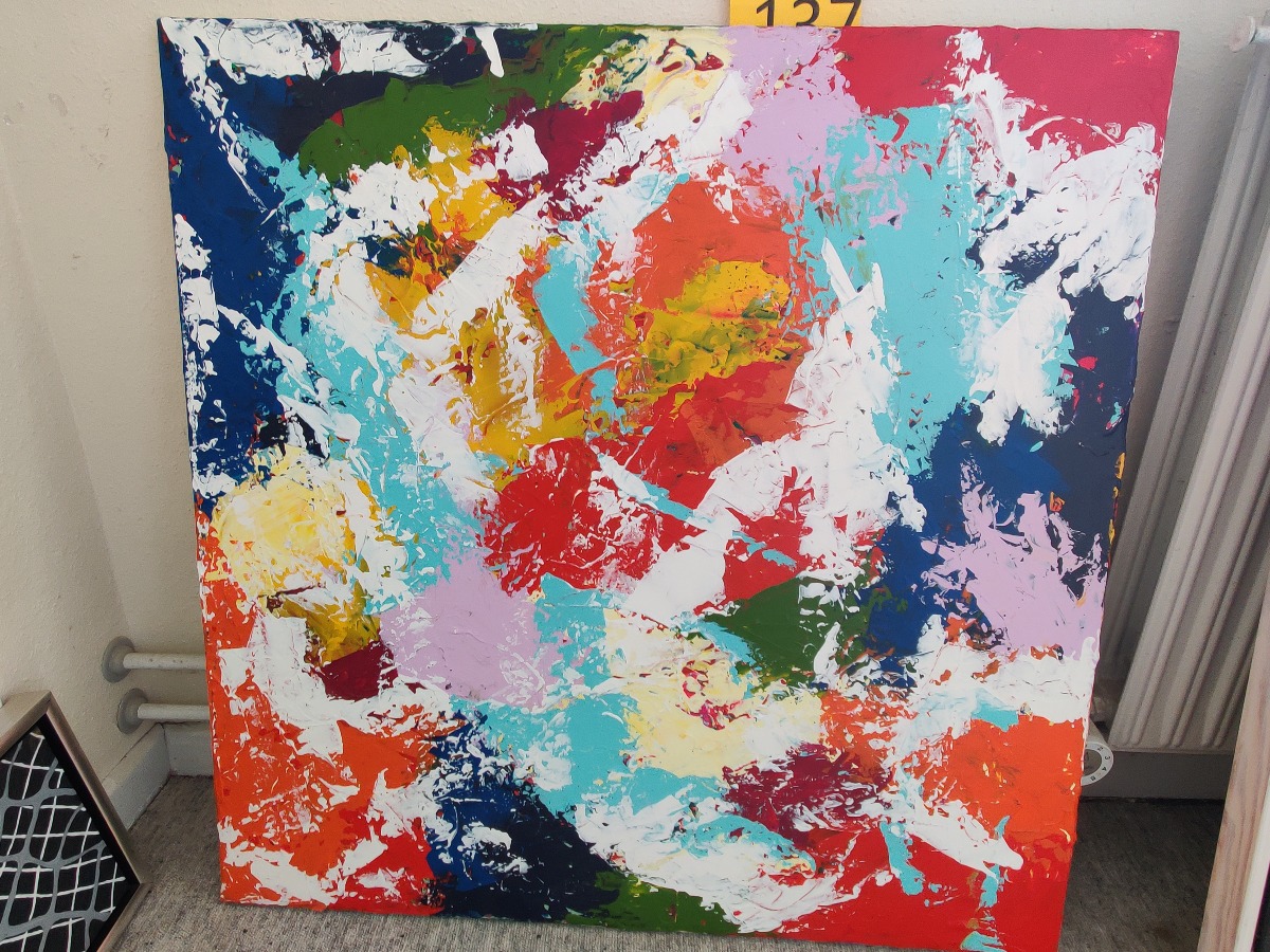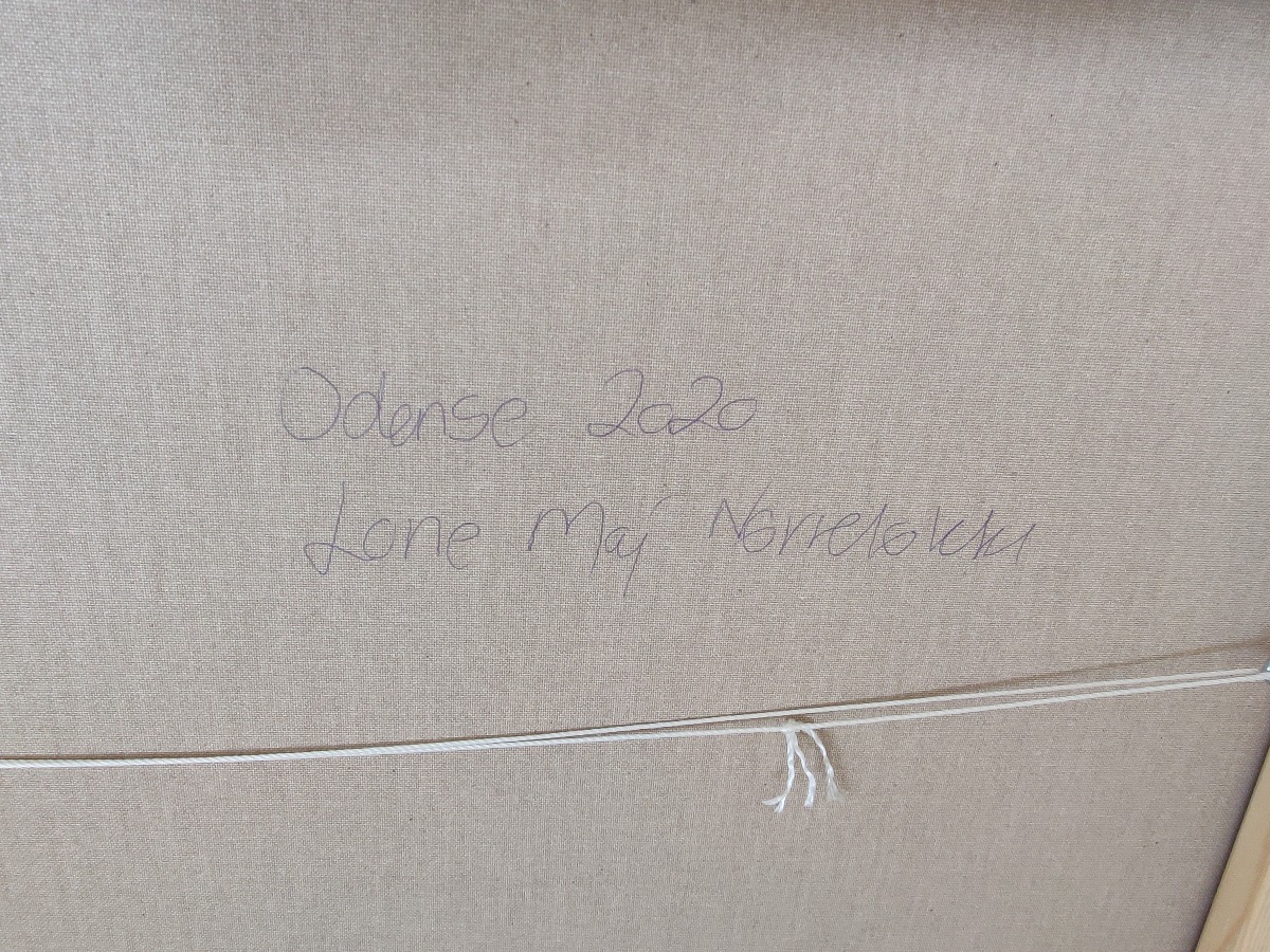 Lone Maj Nørreløkke. Akryl på lærred. Nonfigurativt. Sign. og dateret Odense 2020. 80 x 80 cm.