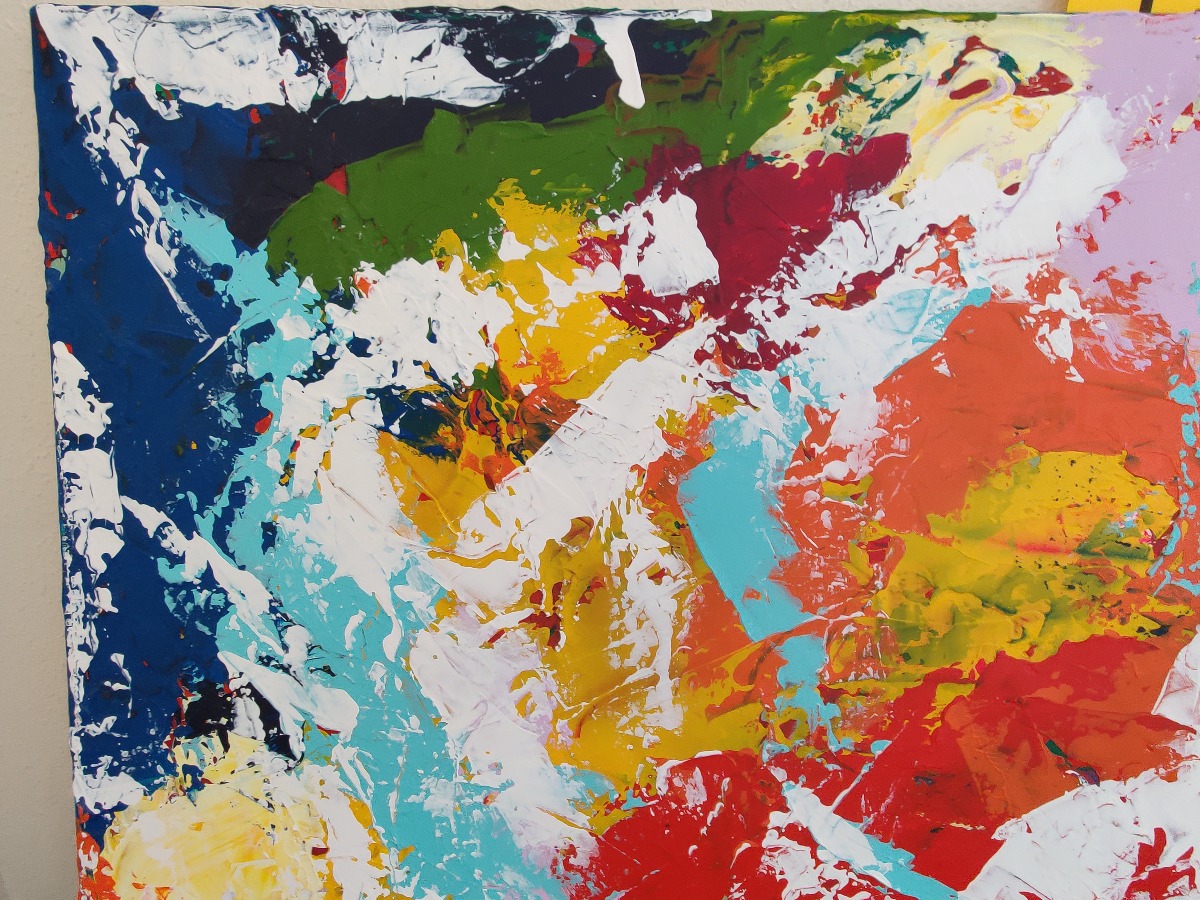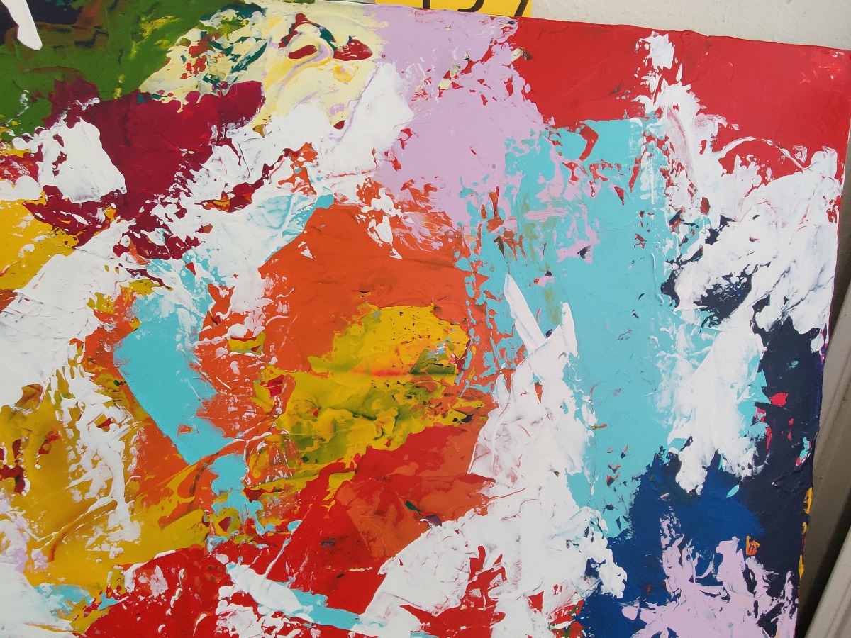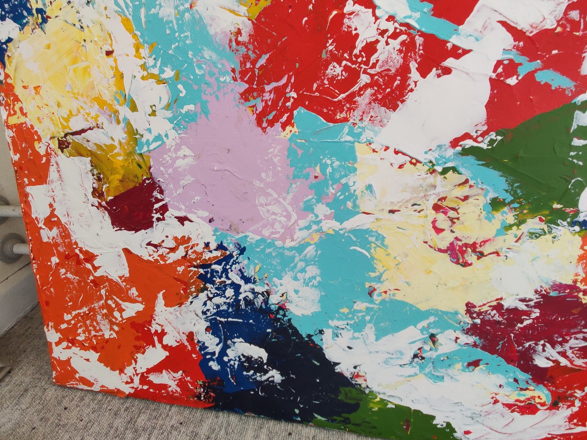 Lone Maj Nørreløkke. Akryl på lærred. Nonfigurativt. Sign. og dateret Odense 2020. 80 x 80 cm.