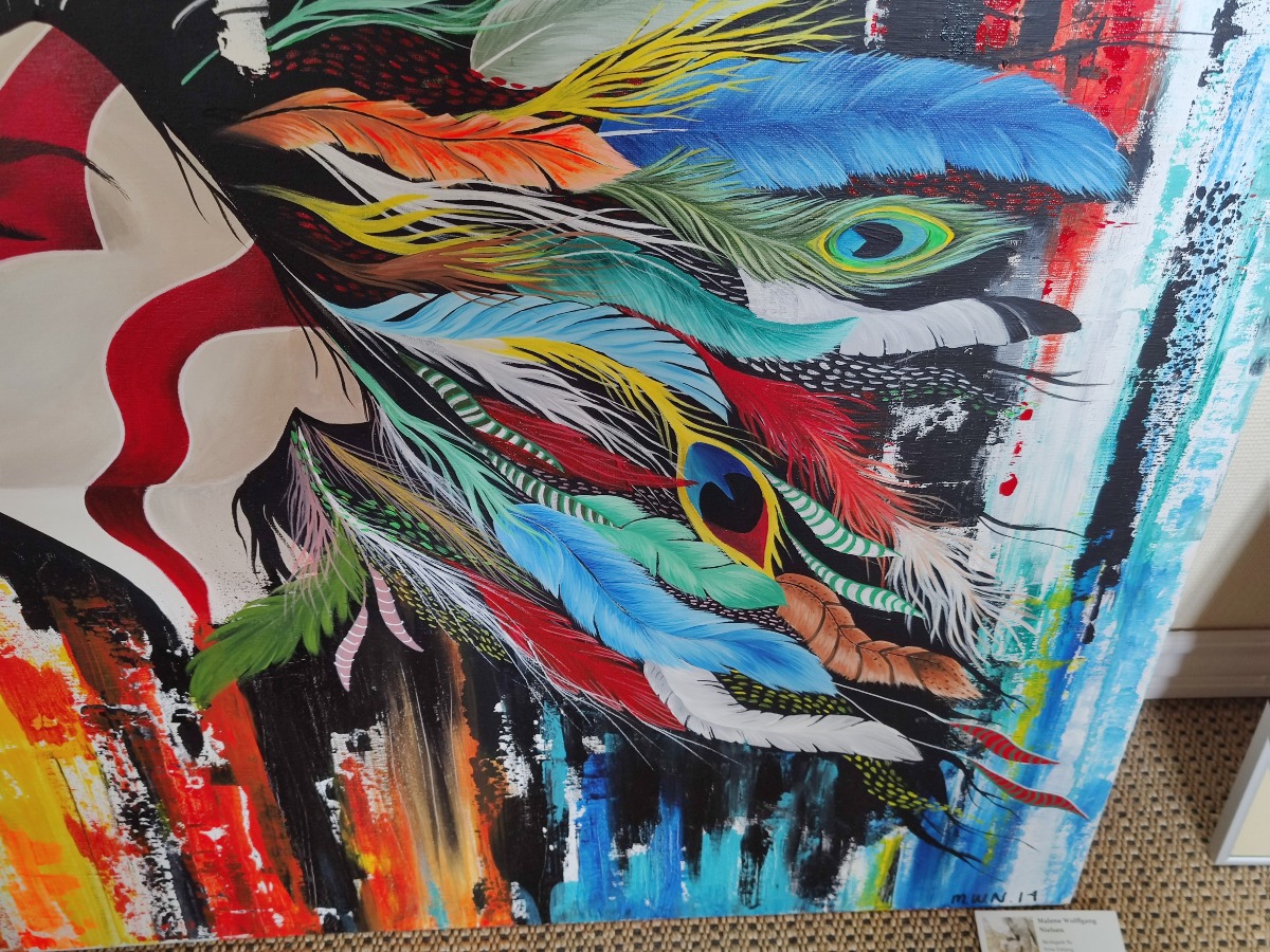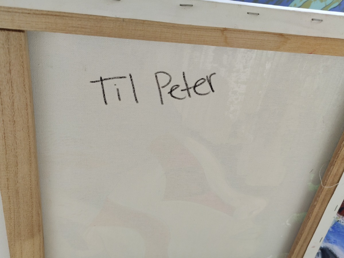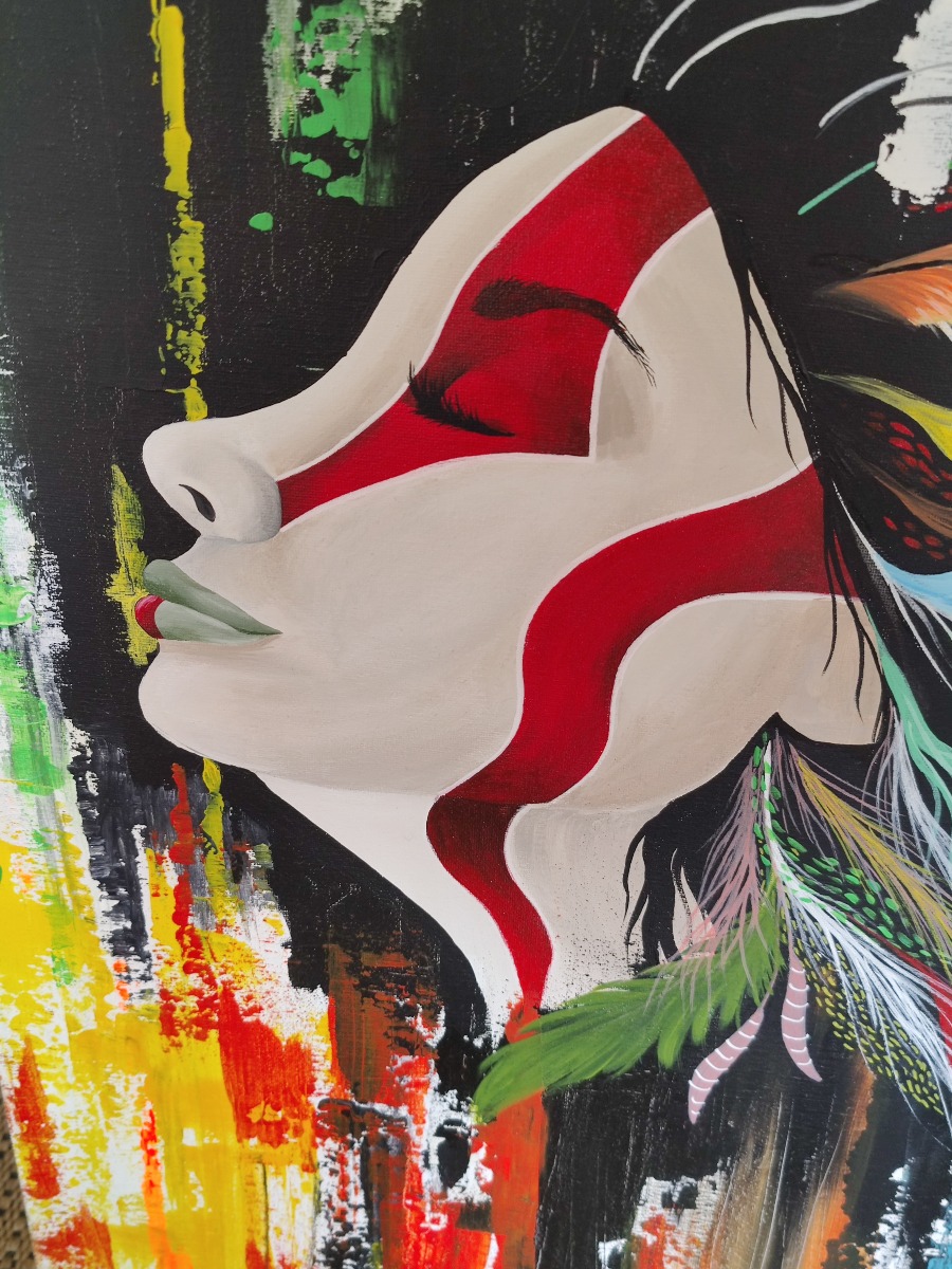 Malene Wolffgang Nielsen. Maskeskildring. Akryl på lærred. Sign. MWN 14 og dedikation på bagside. 80 x 80 cm.