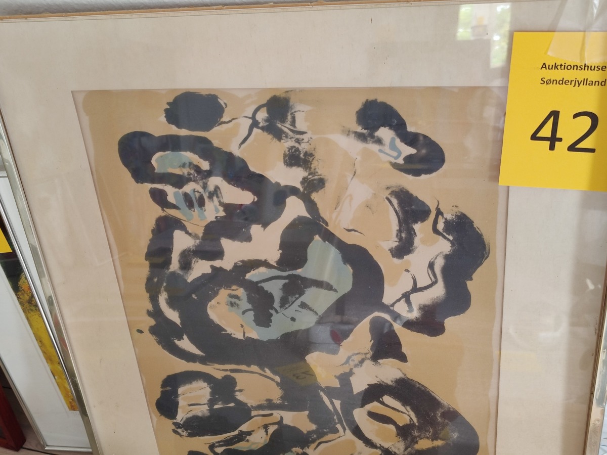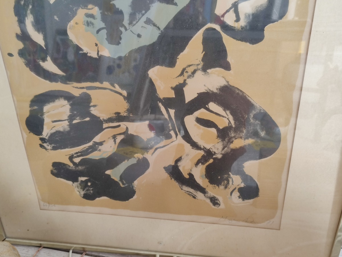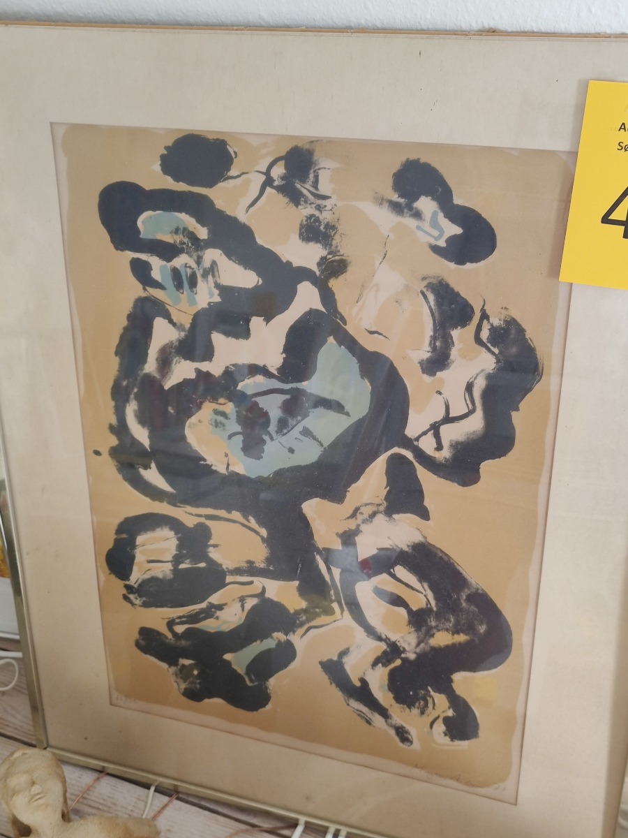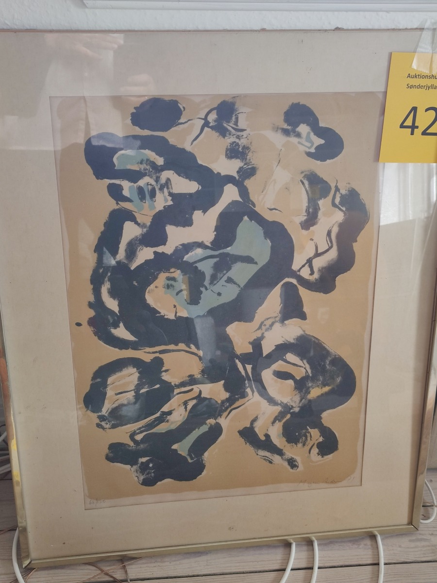 Mogens Andersen litografi. Monteret i defekt ramme med passepartout. Signeret Mogens Andersen 71. nr. 66/150. 80 x 66 cm.