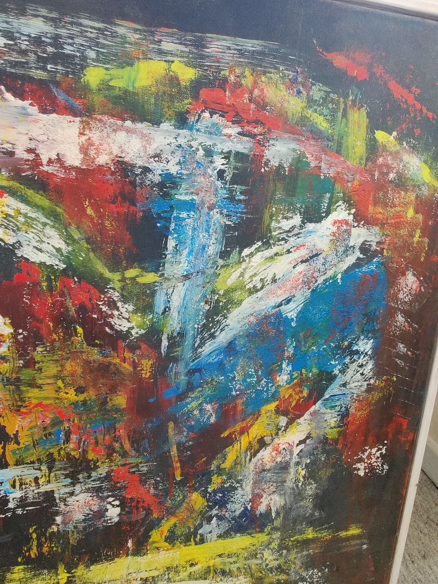 OLS. Nonfigurativt. Akryl på lærred, sign. OLS 2003. 83 x 63 cm.