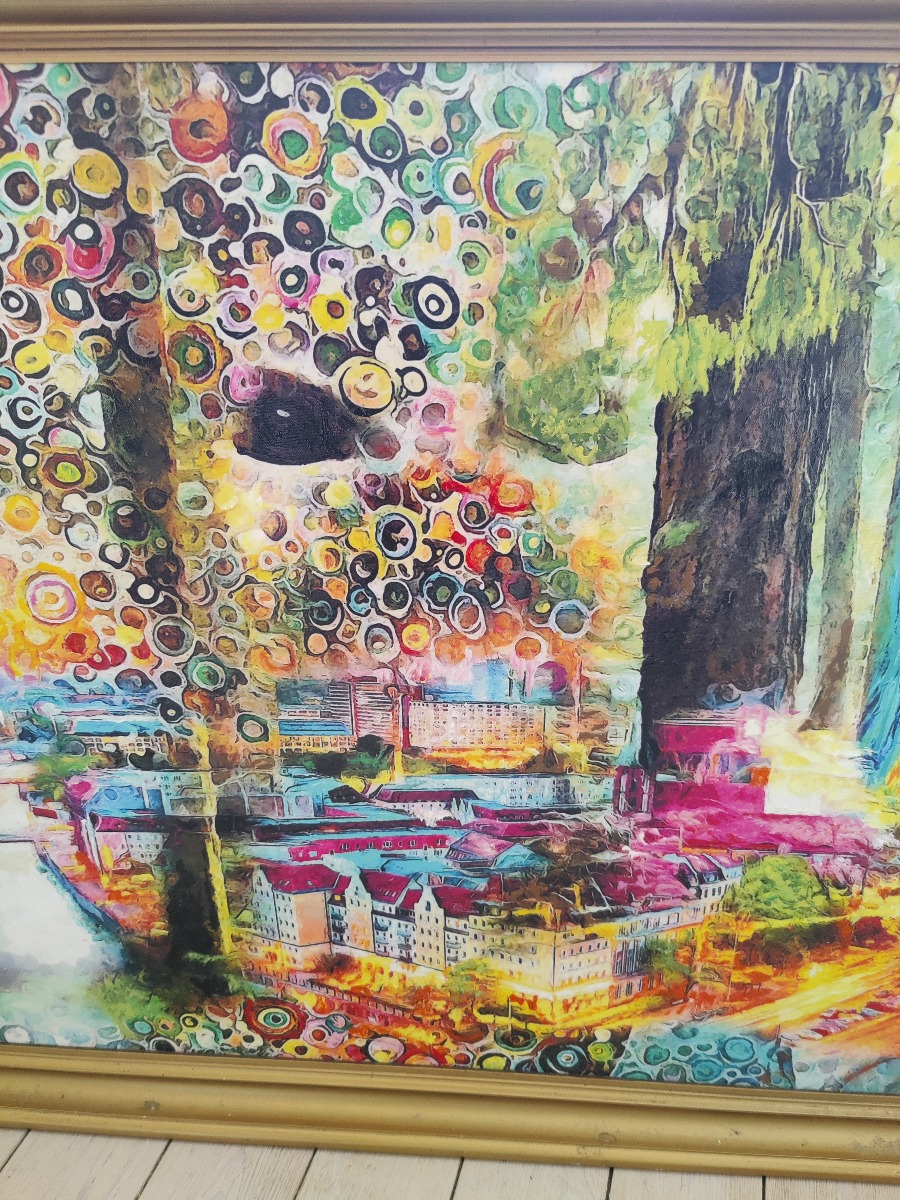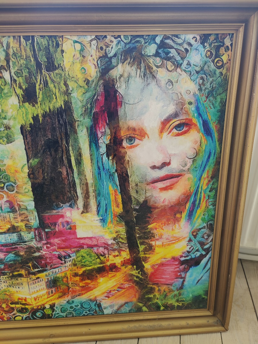 Peter Parling. Fotoprint og akryl på lærred. Figurkomposition. 75 x 104 cm. Galleripris 5000,-
