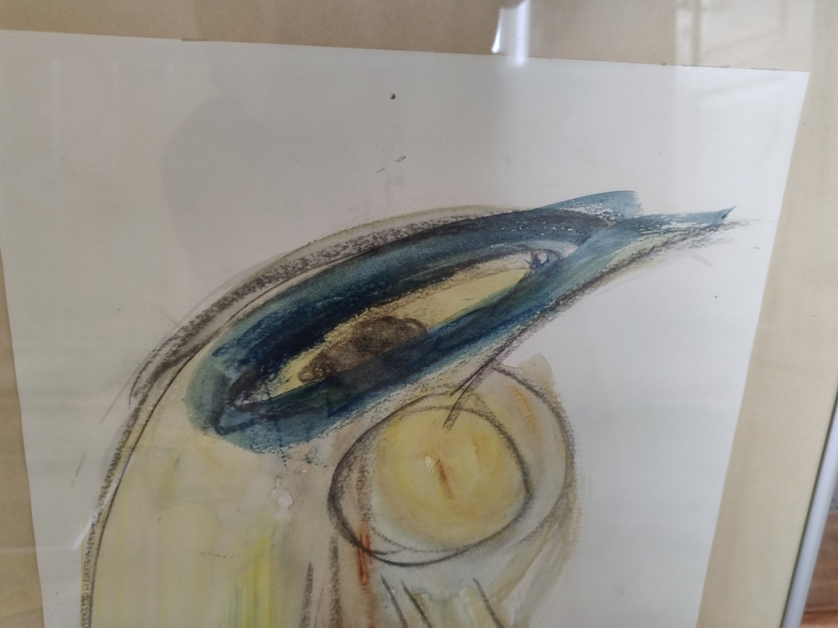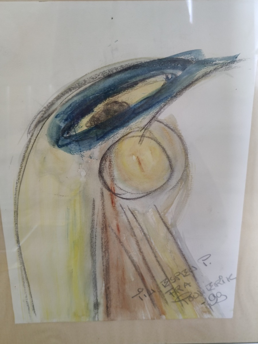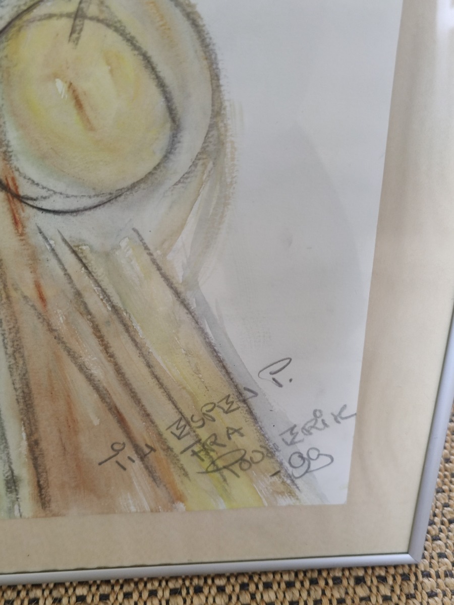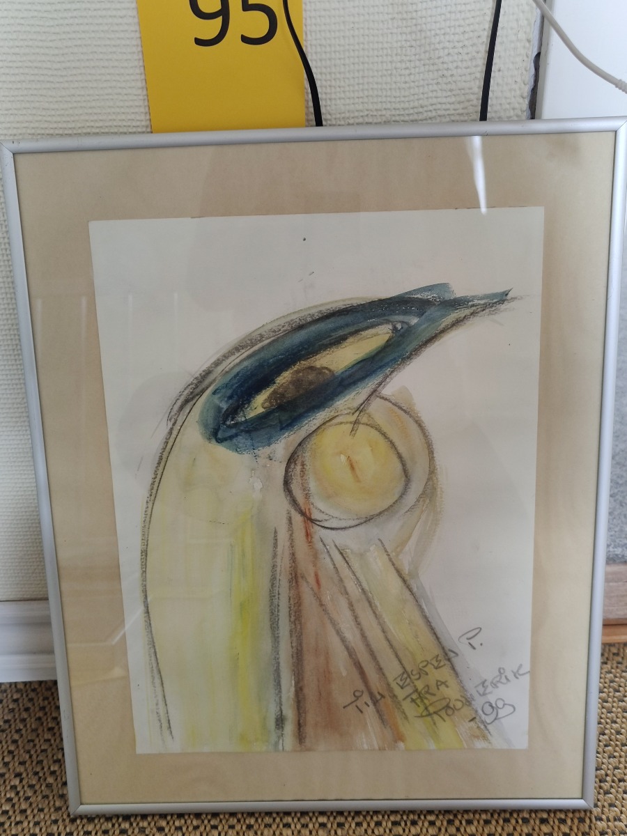 Poul Erik. Abstrakt motiv med dedikation. Farvekridt og kul på papir. Dateret 99. 52 x 41 cm.