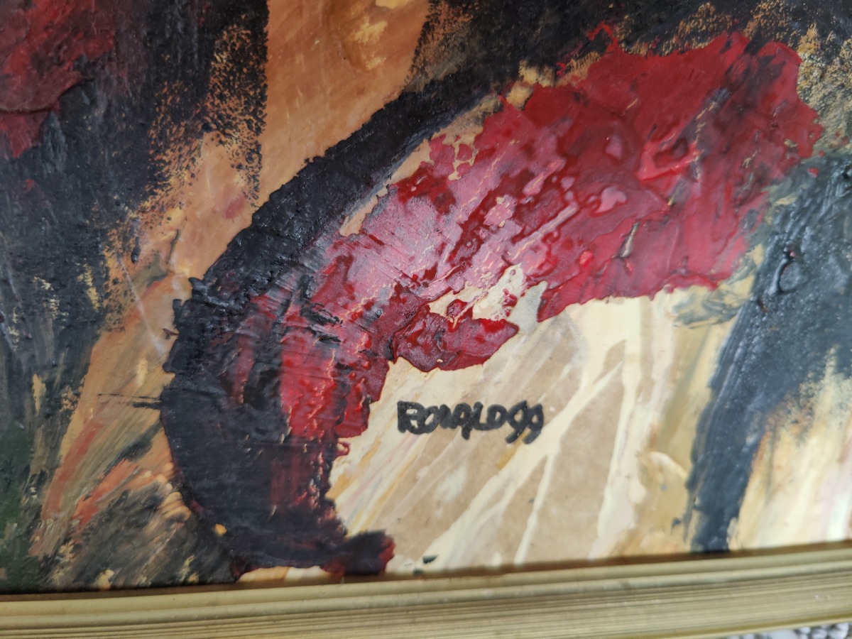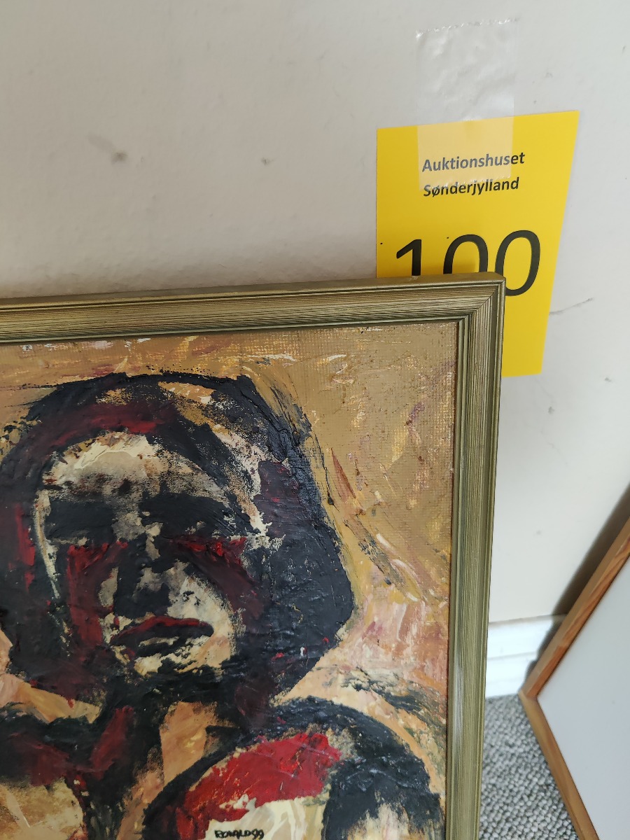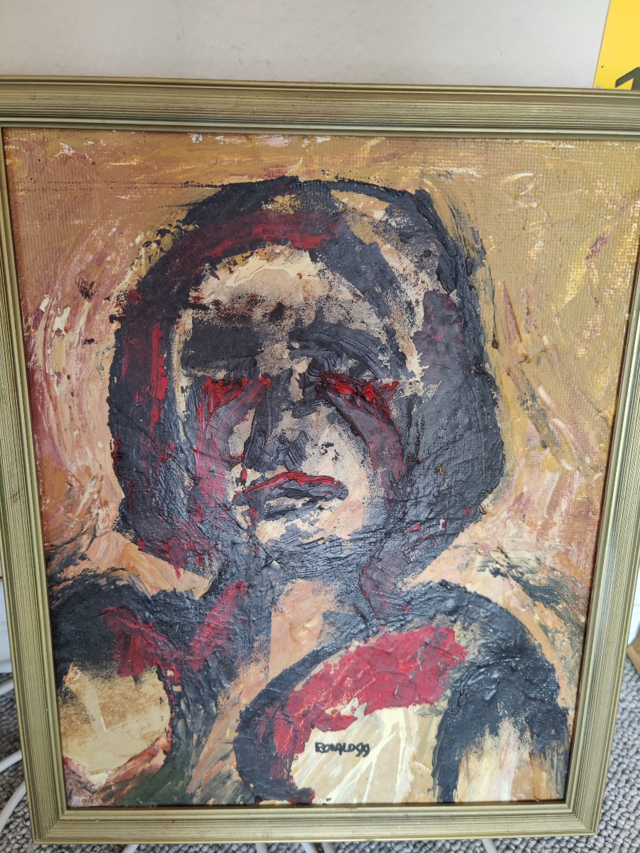 Ronald. Kvindeportræt. Akryl på plade. Ligeledes bemalet på bagside. Sign. Ronald 99. 47 x 35 cm.