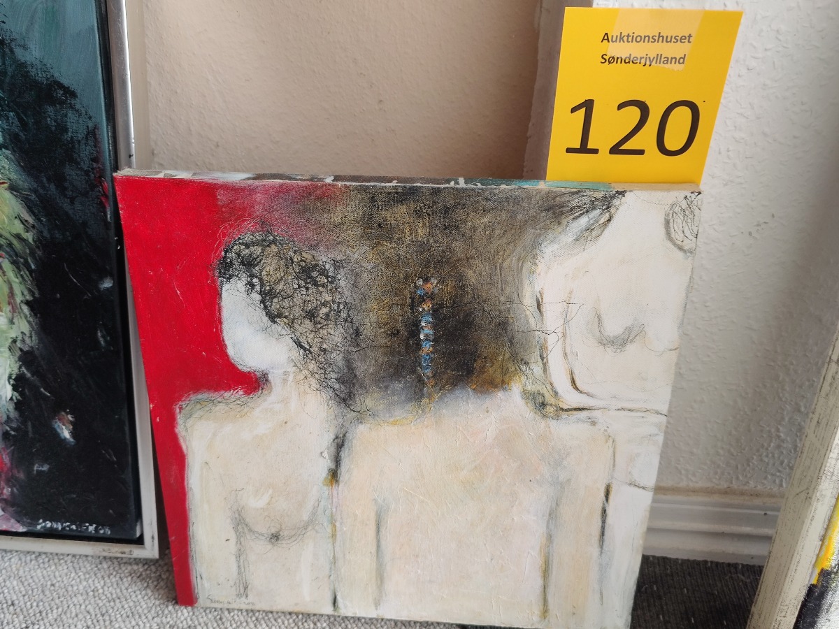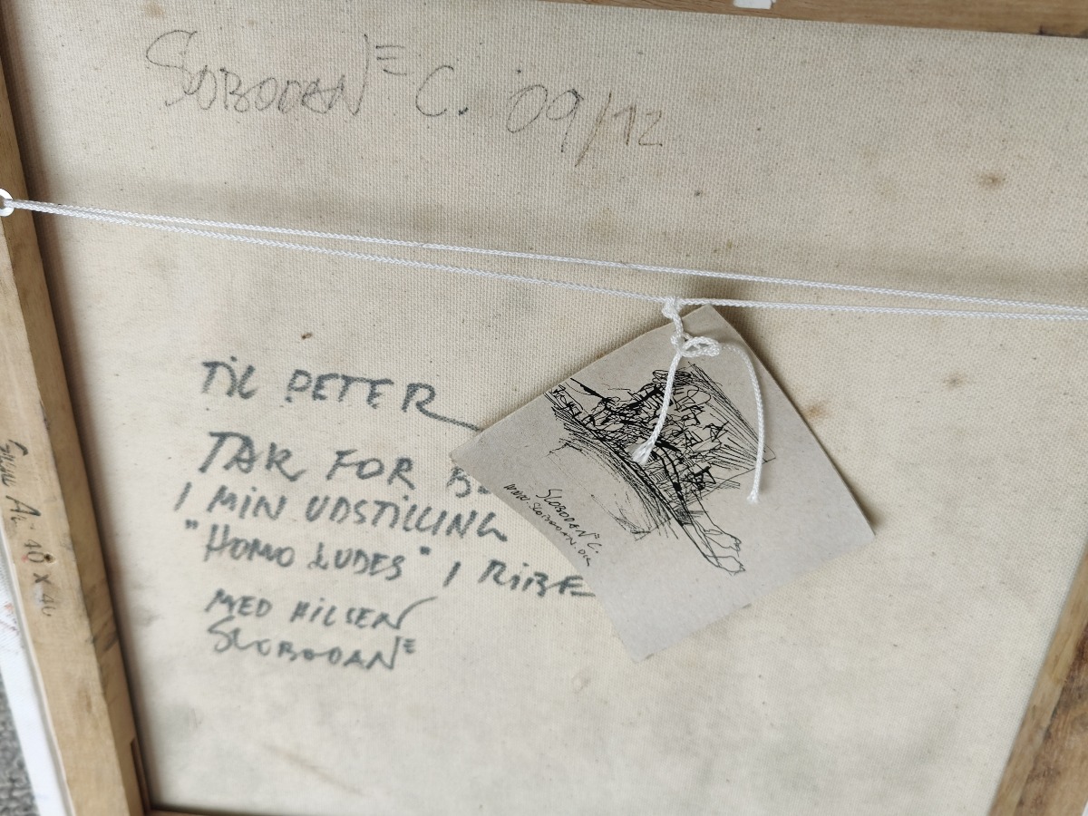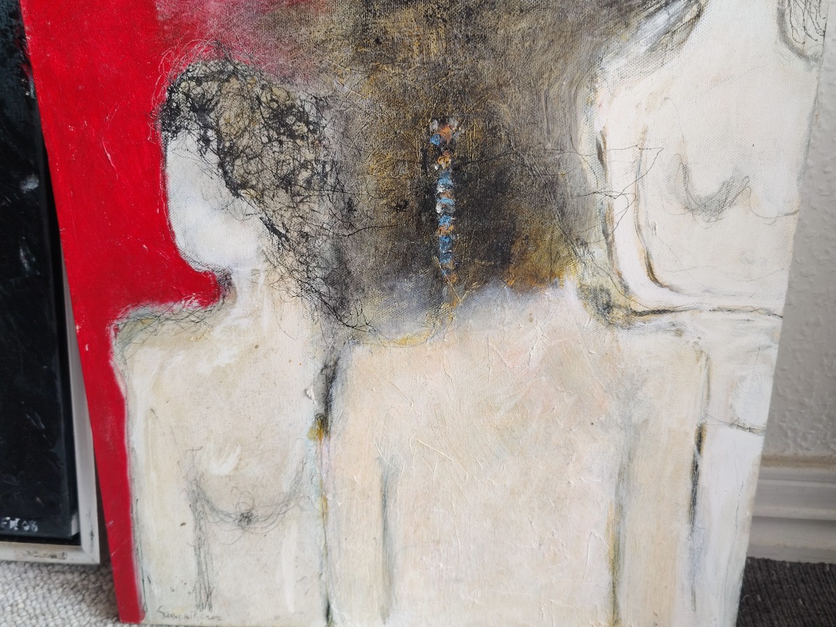 Slobodan C. Motiv af kvinder. Akryl på lærred. signeret på lærred og bagside og deddikation bagpå. 41 x 40 cm.