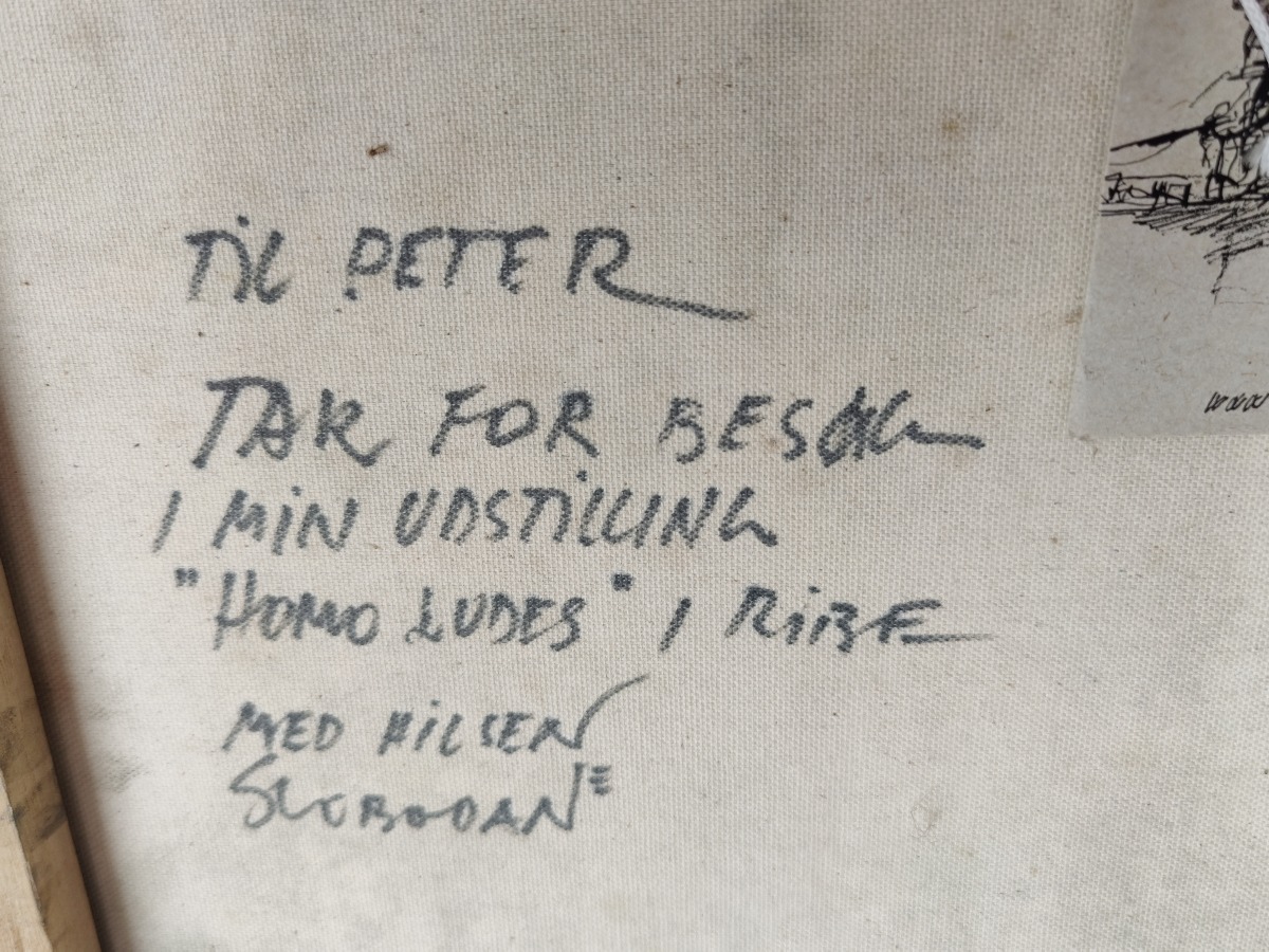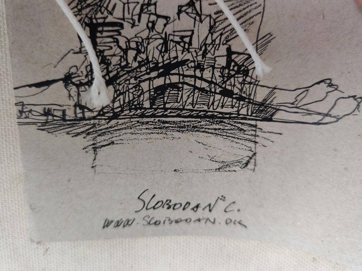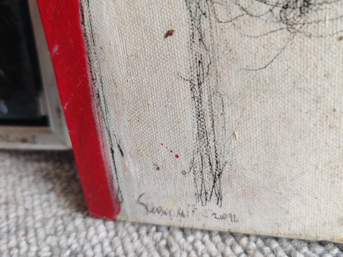 Slobodan C. Motiv af kvinder. Akryl på lærred. signeret på lærred og bagside og deddikation bagpå. 41 x 40 cm.