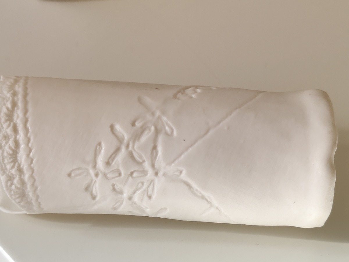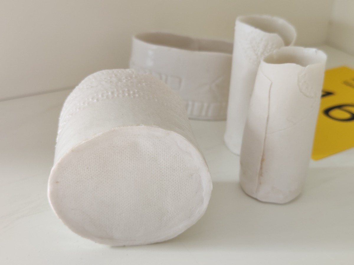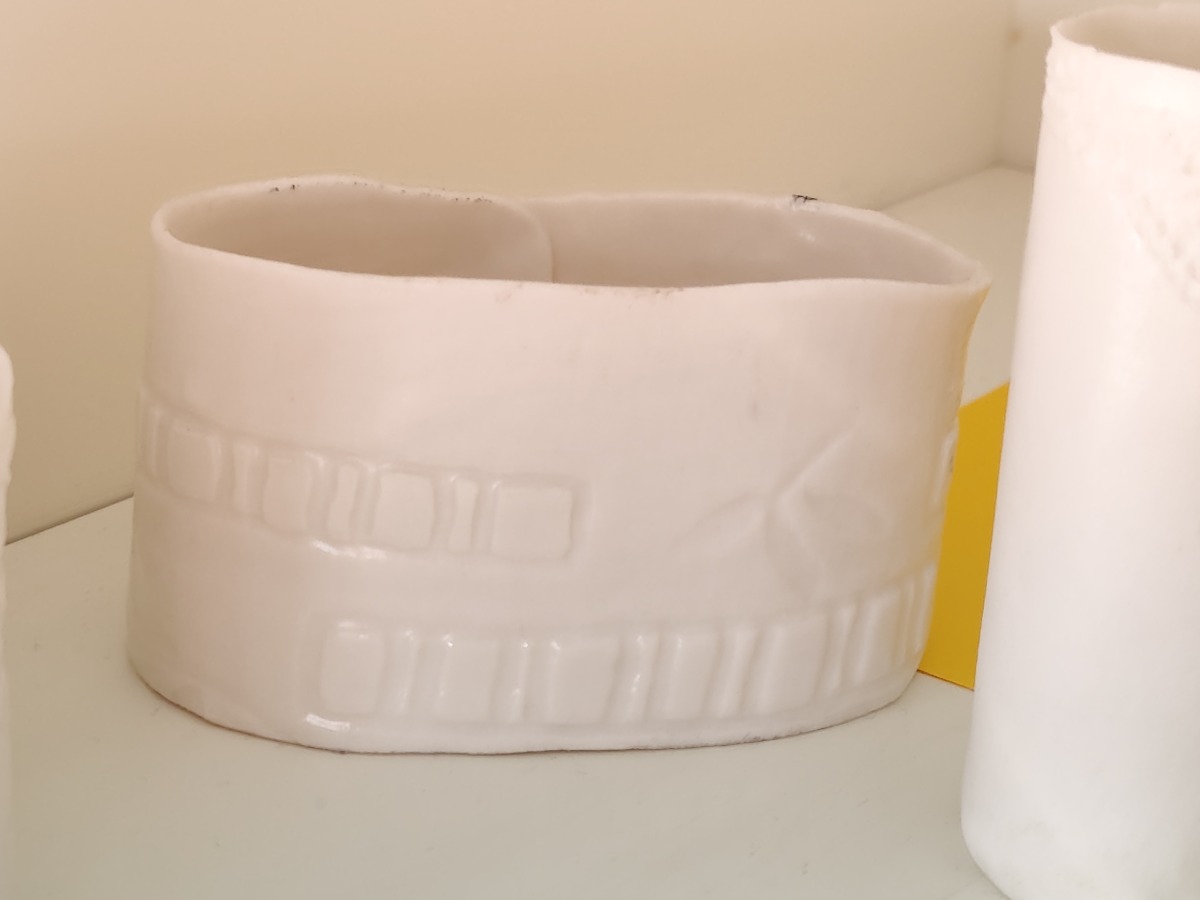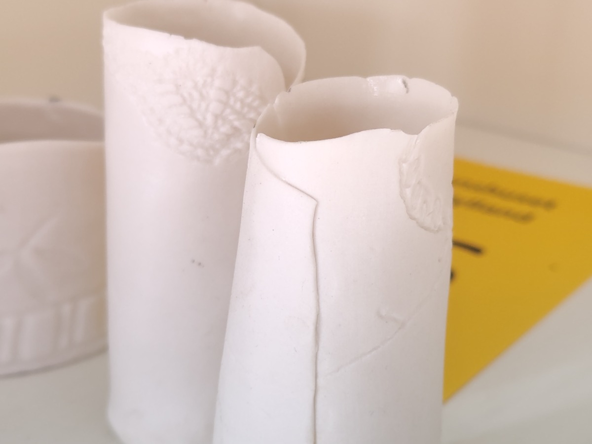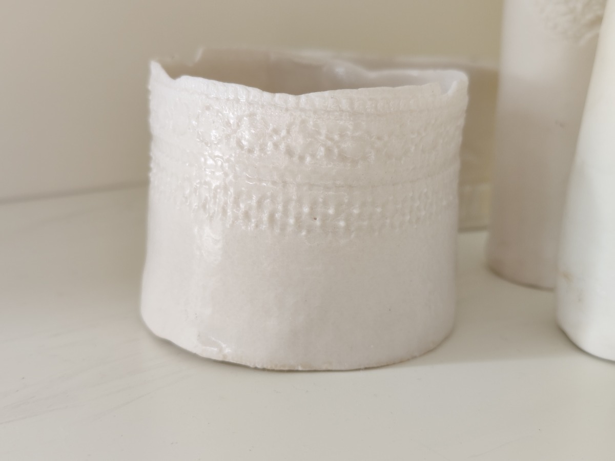 Små vaser af porcelænsler. Tyndt udrullet og med trykt dekoration. H.for største 8 cm. Største Ø. 7 cm.