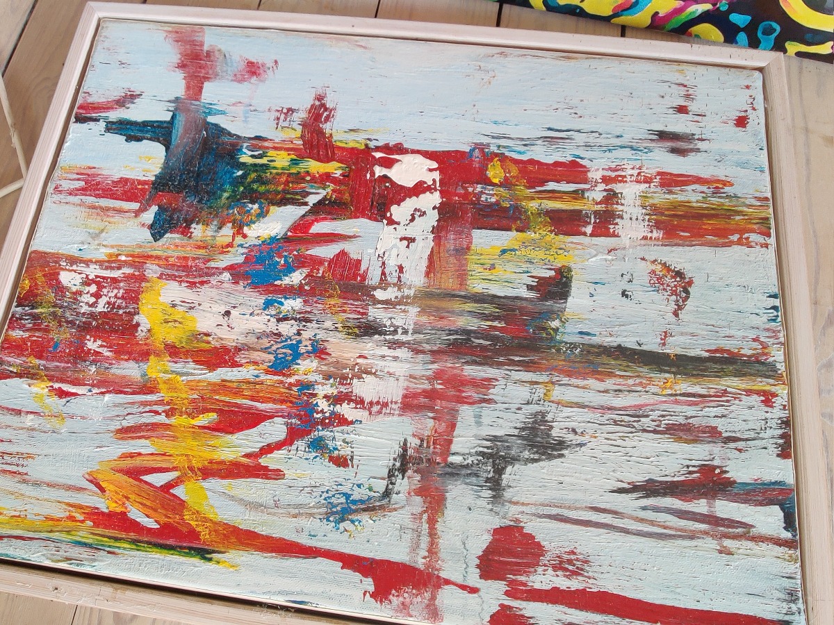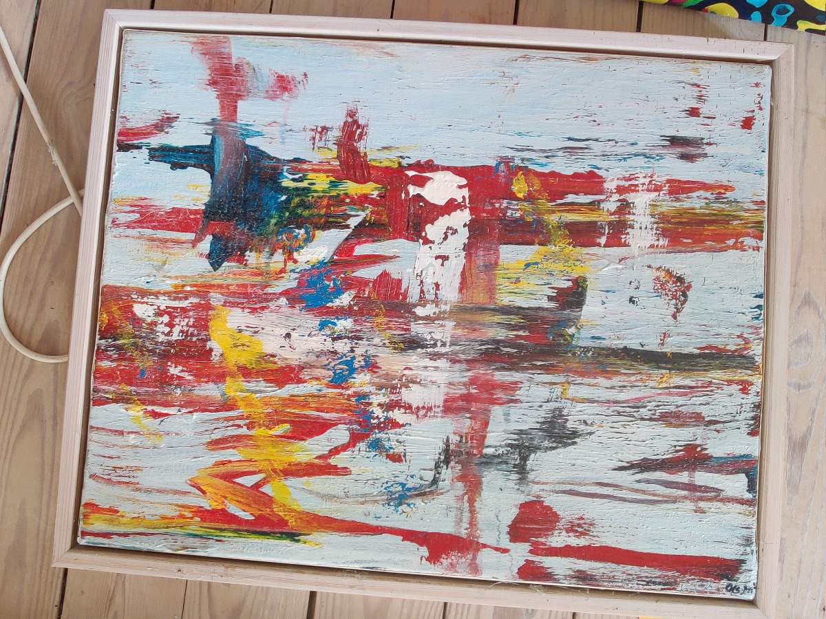 Ubk. kunstner Abstrakt motiv Akryl på lærred. Sign. OLS 2002. 44 x 54 cm.