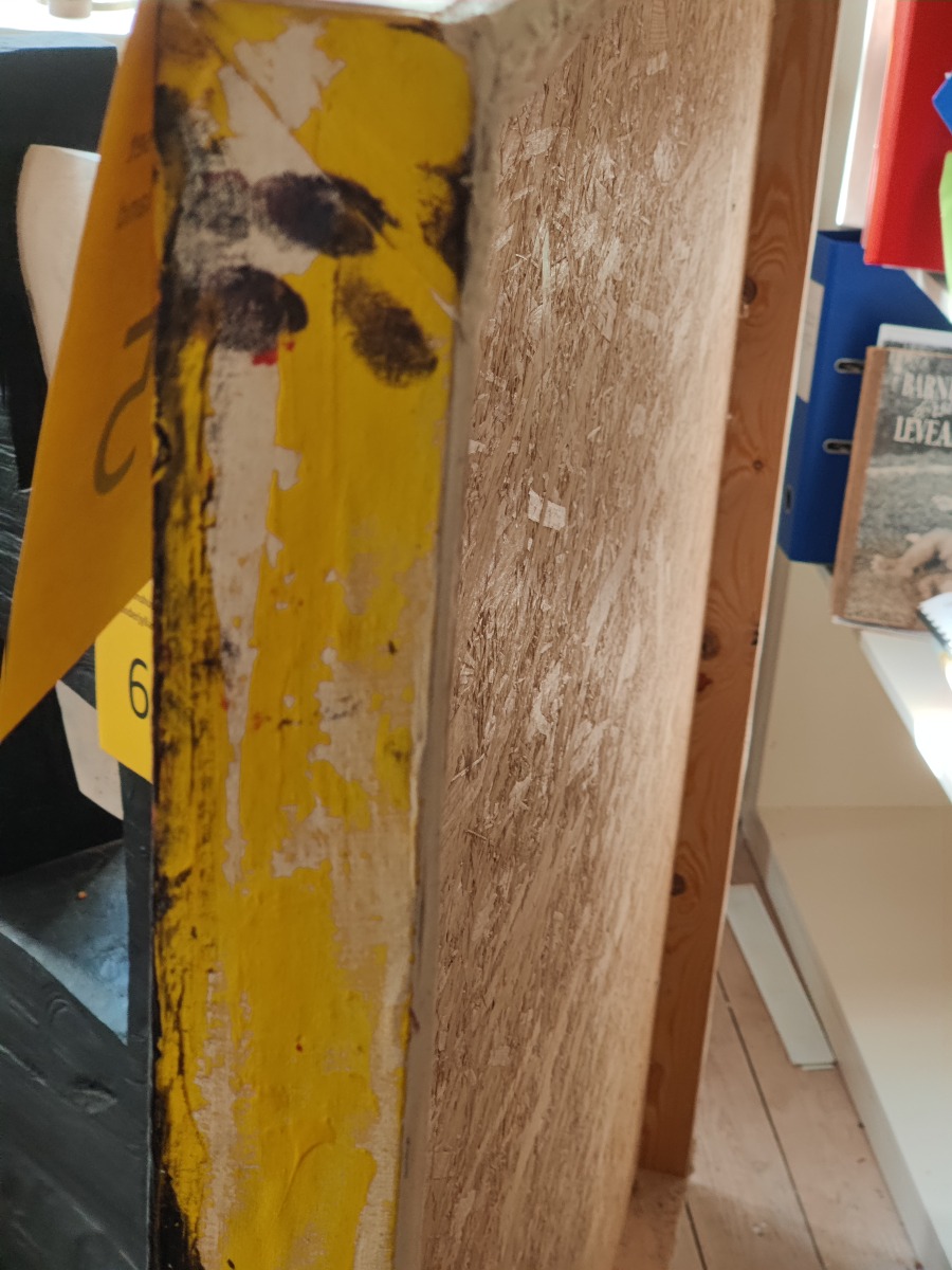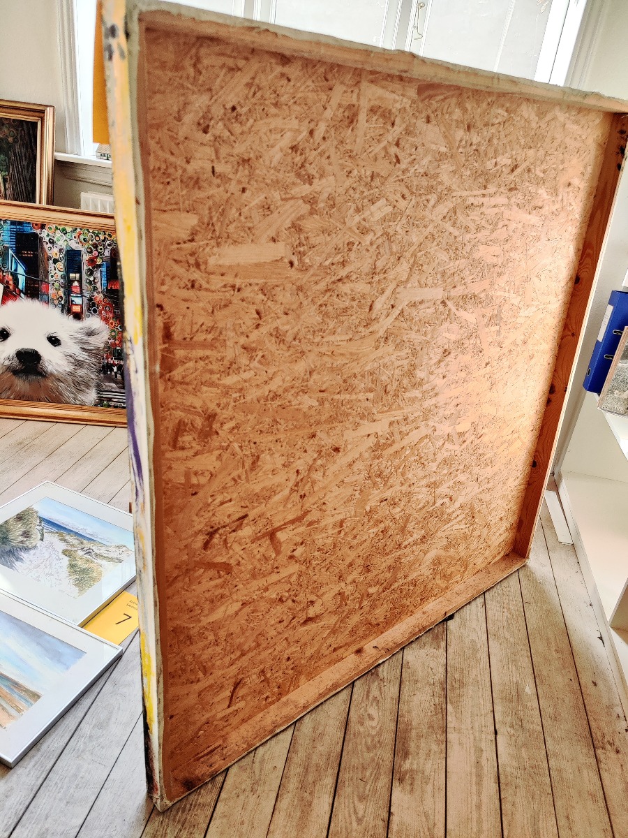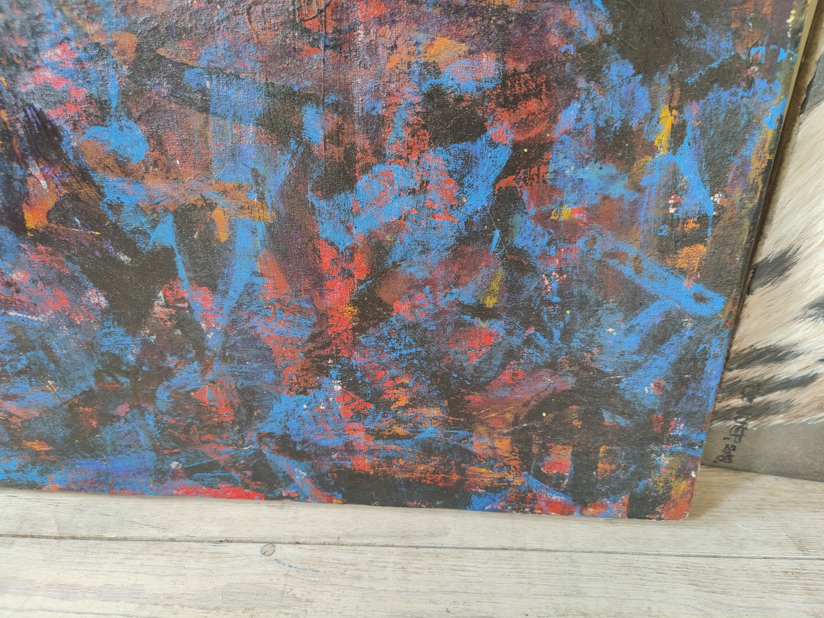 Ubk. kunstner komposition. Akryl på lærred opklæbet på plade. Sign. med symbol. 124 x 122 cm.