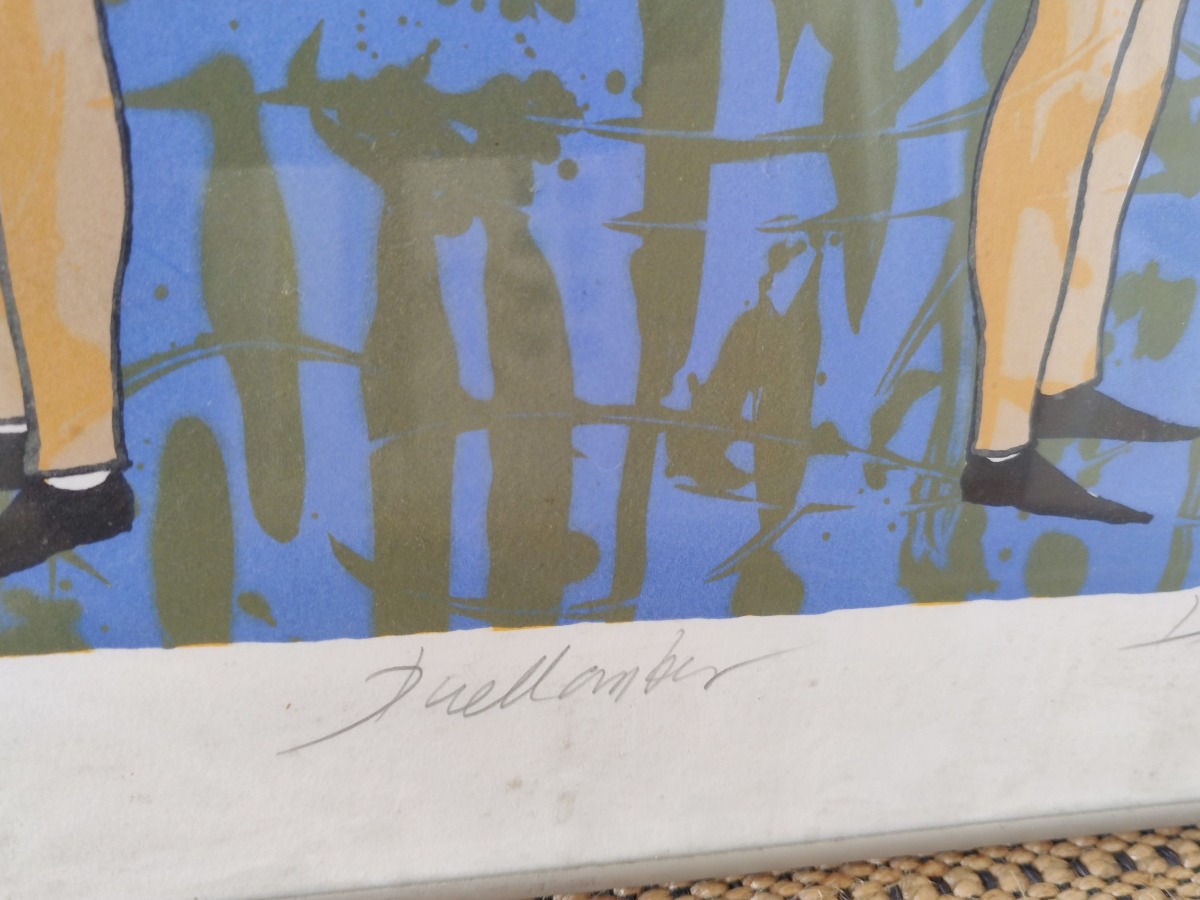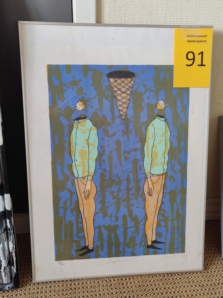 Ubk. kunstner litografi "Duellander". Sign. og dateret 93. 34/200. 71 x 60 cm.