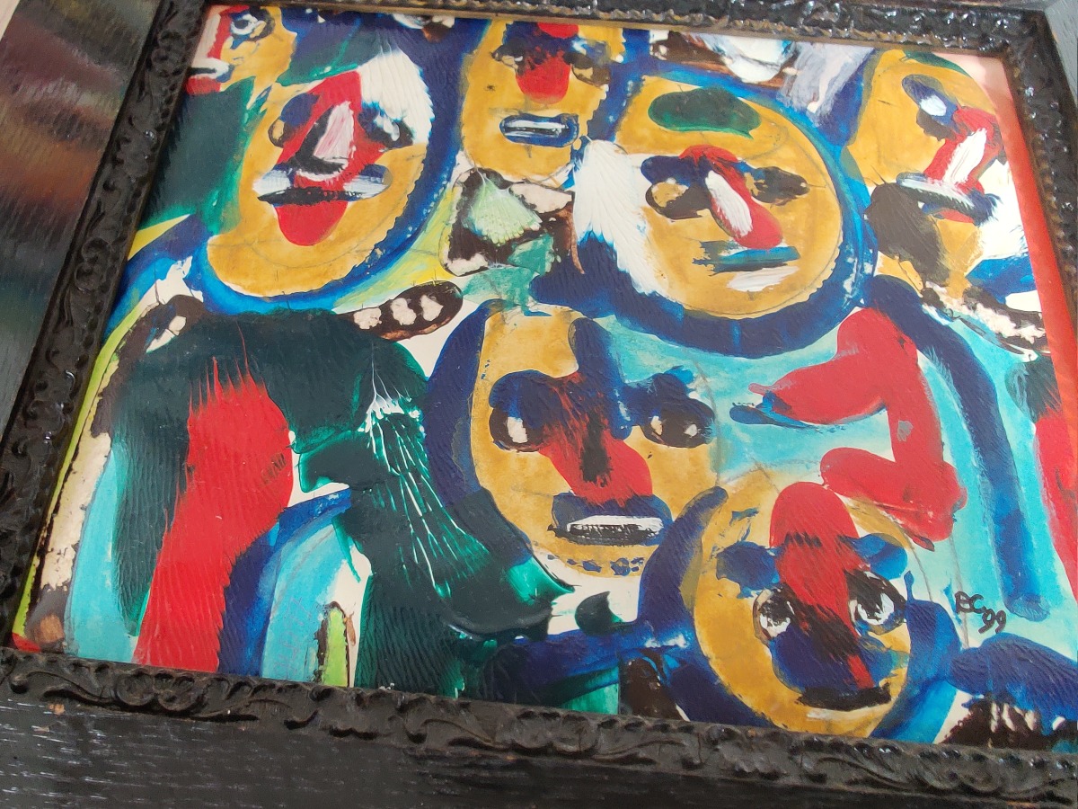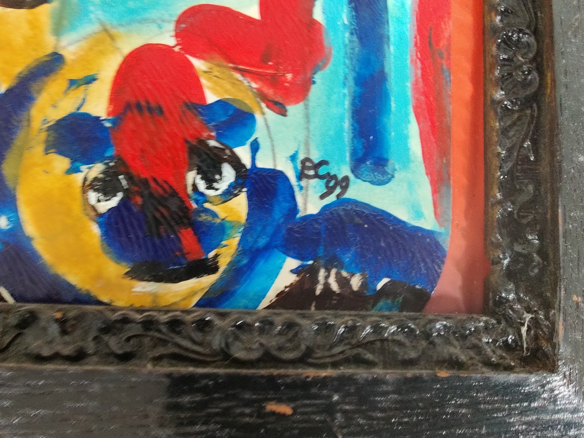 Ubk. kunstner. Maskekomposition. Akryl på papir. Sign, BC99. 32 x 36 cm.