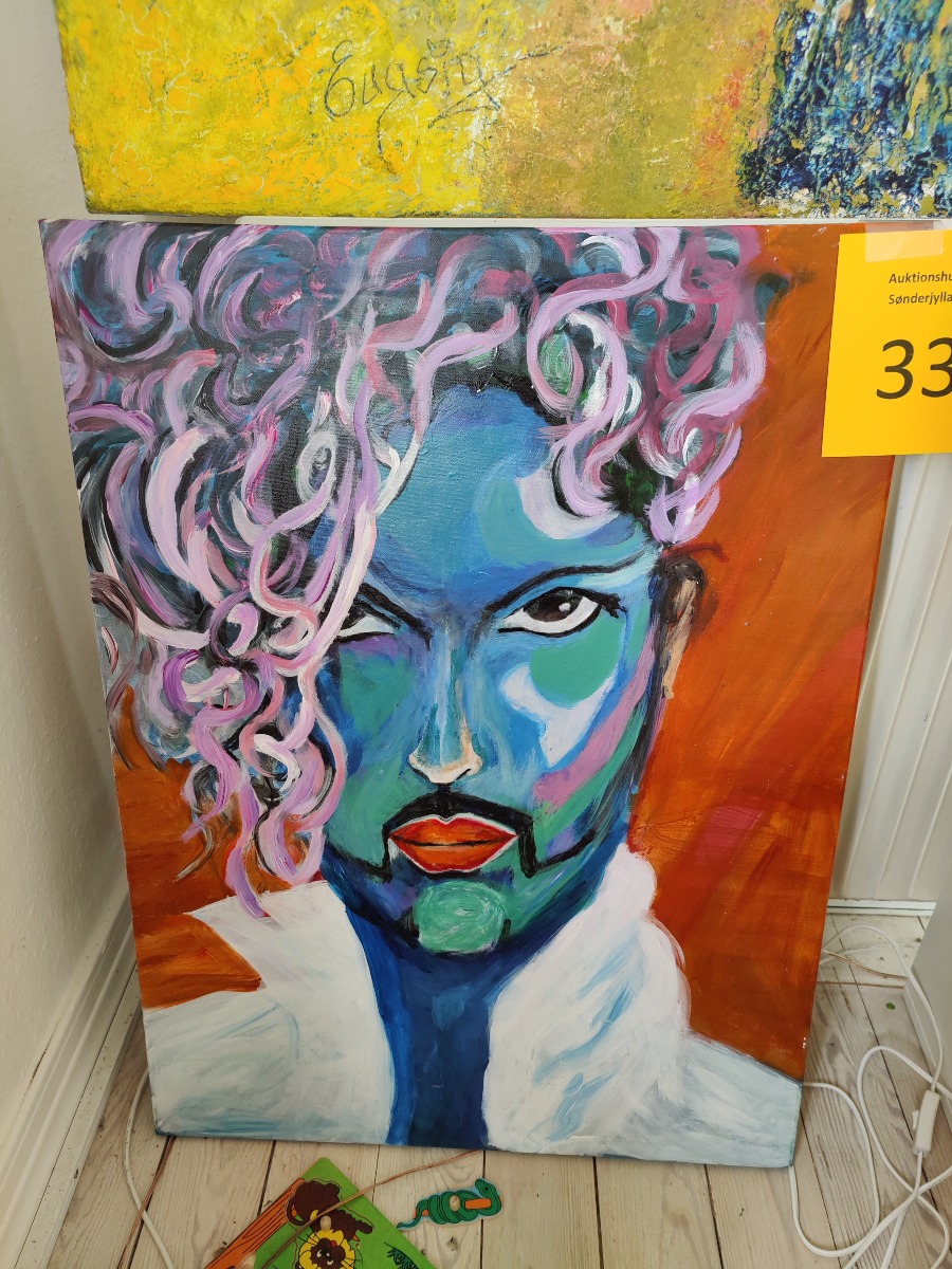 Ubk. kunstner. Portræt af Prince. Akryl på lærred. usign. 81 x 60 cm.