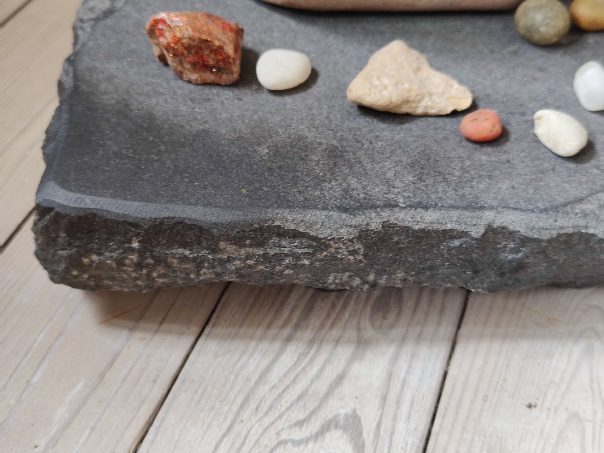 Ubk. kunstner skulptur af fedtsten. monteret på stensokkel. Poleret overflade i organisk form. 40 x 60 x 29 cm.