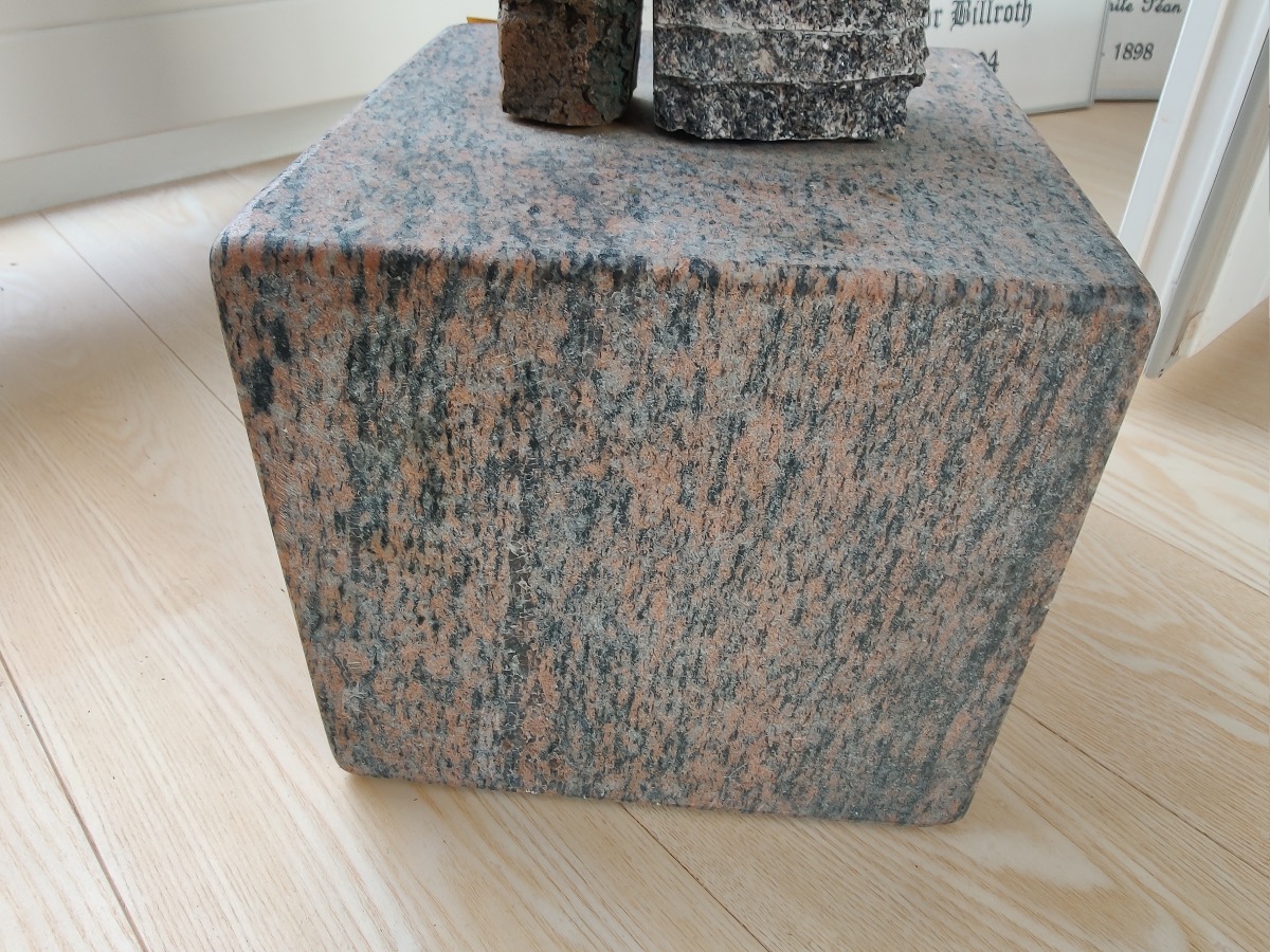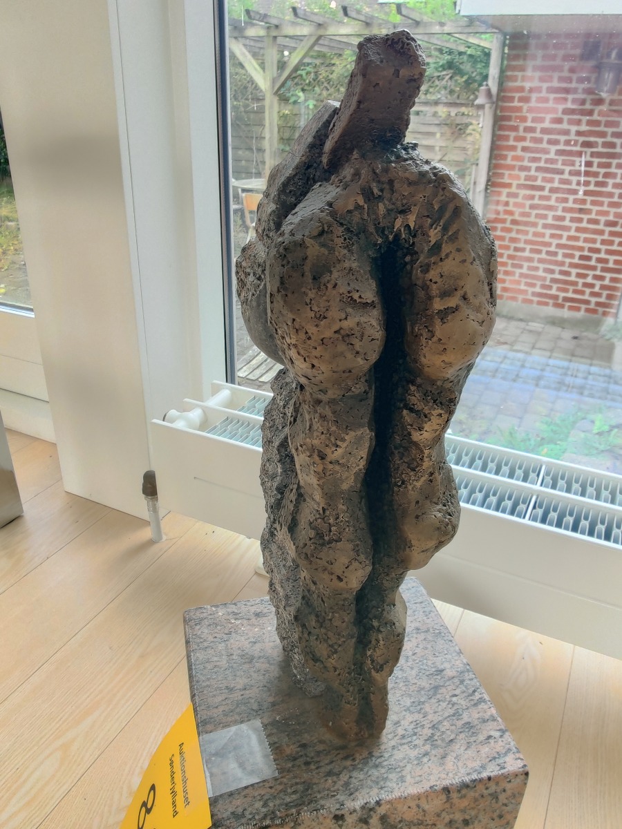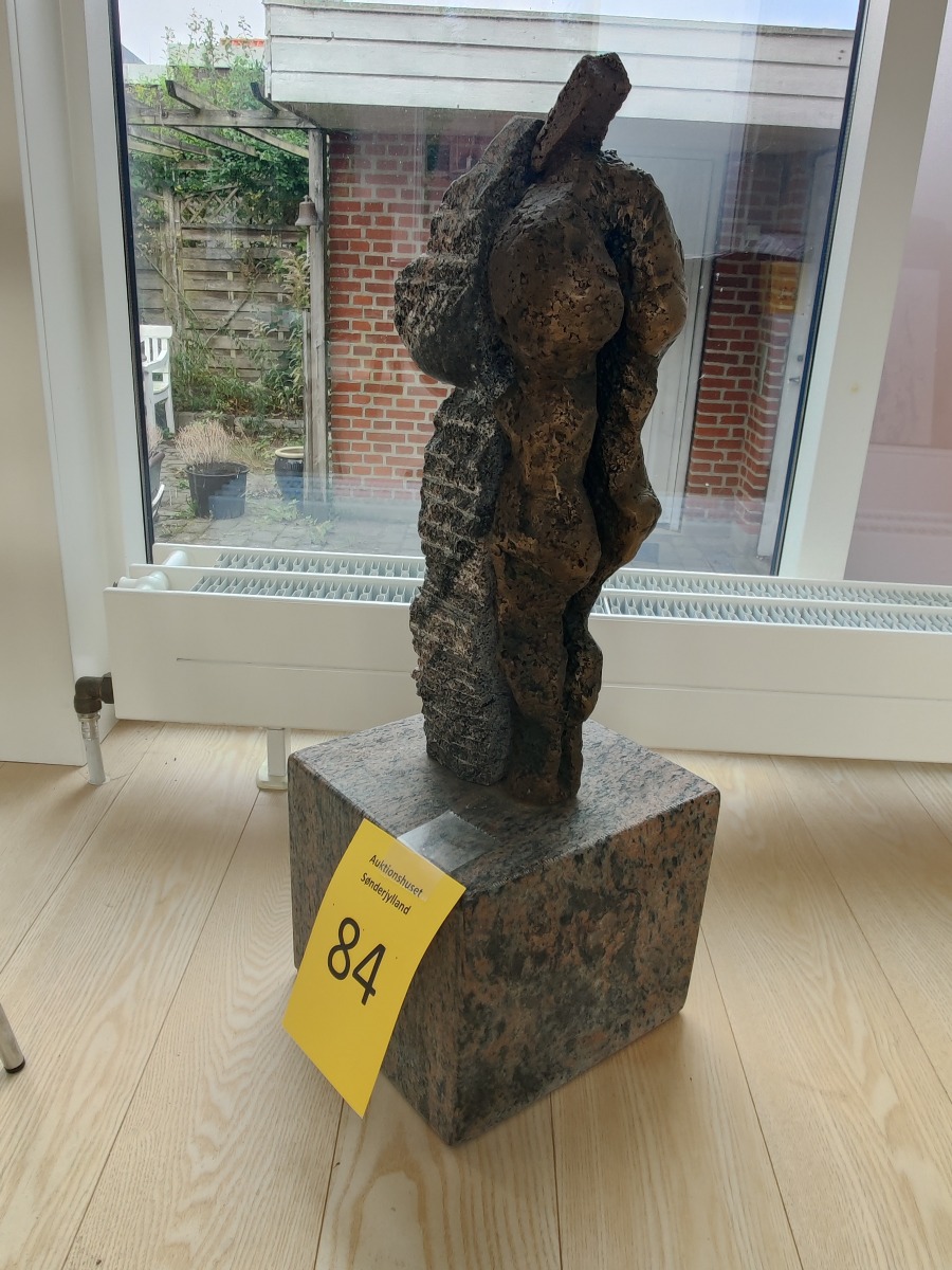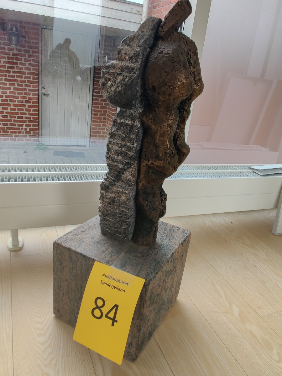 Ubk. kunstner. Skulptur af granit og bronze. Umiddelbart ikke signeret. H. 65, Fod. 22 x 22 cm.