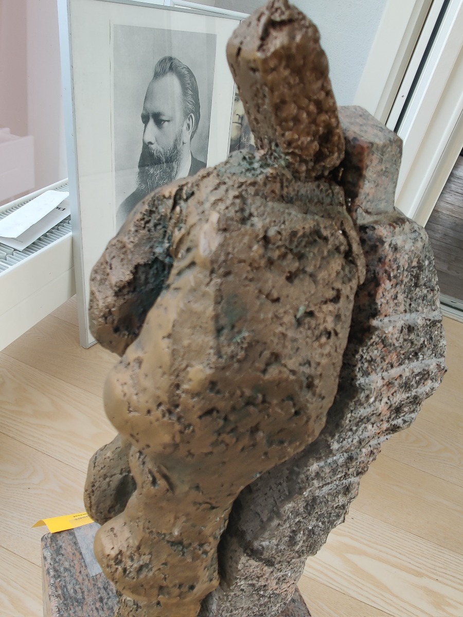 Ubk. kunstner. Skulptur af granit og bronze