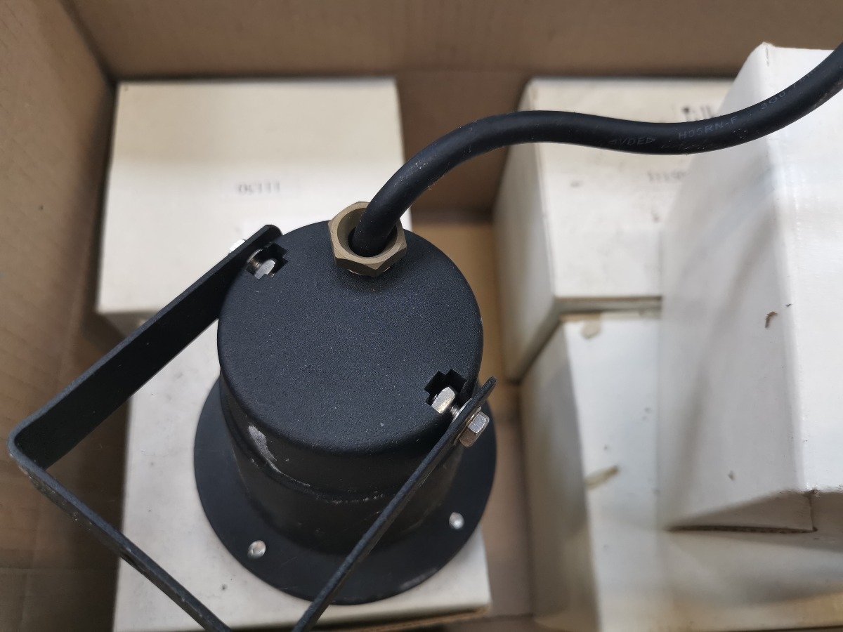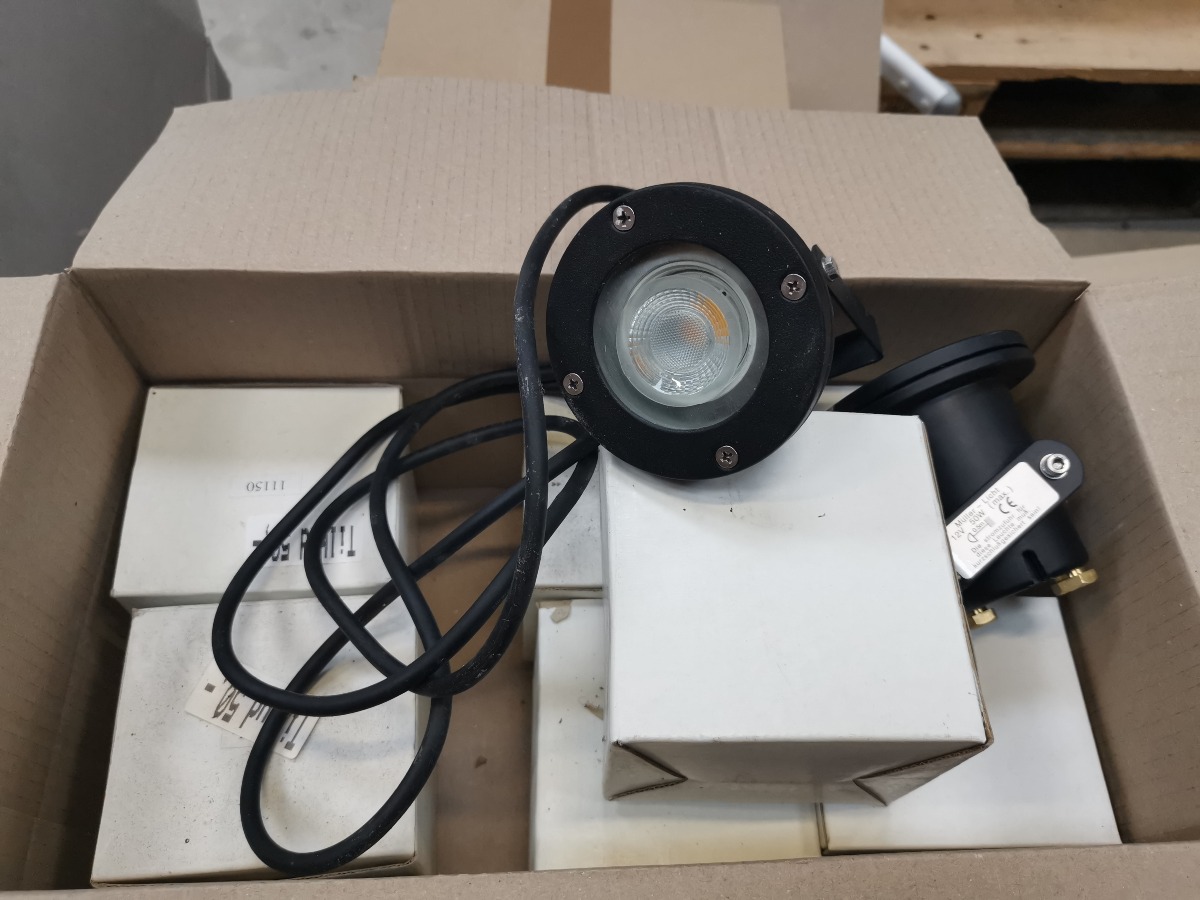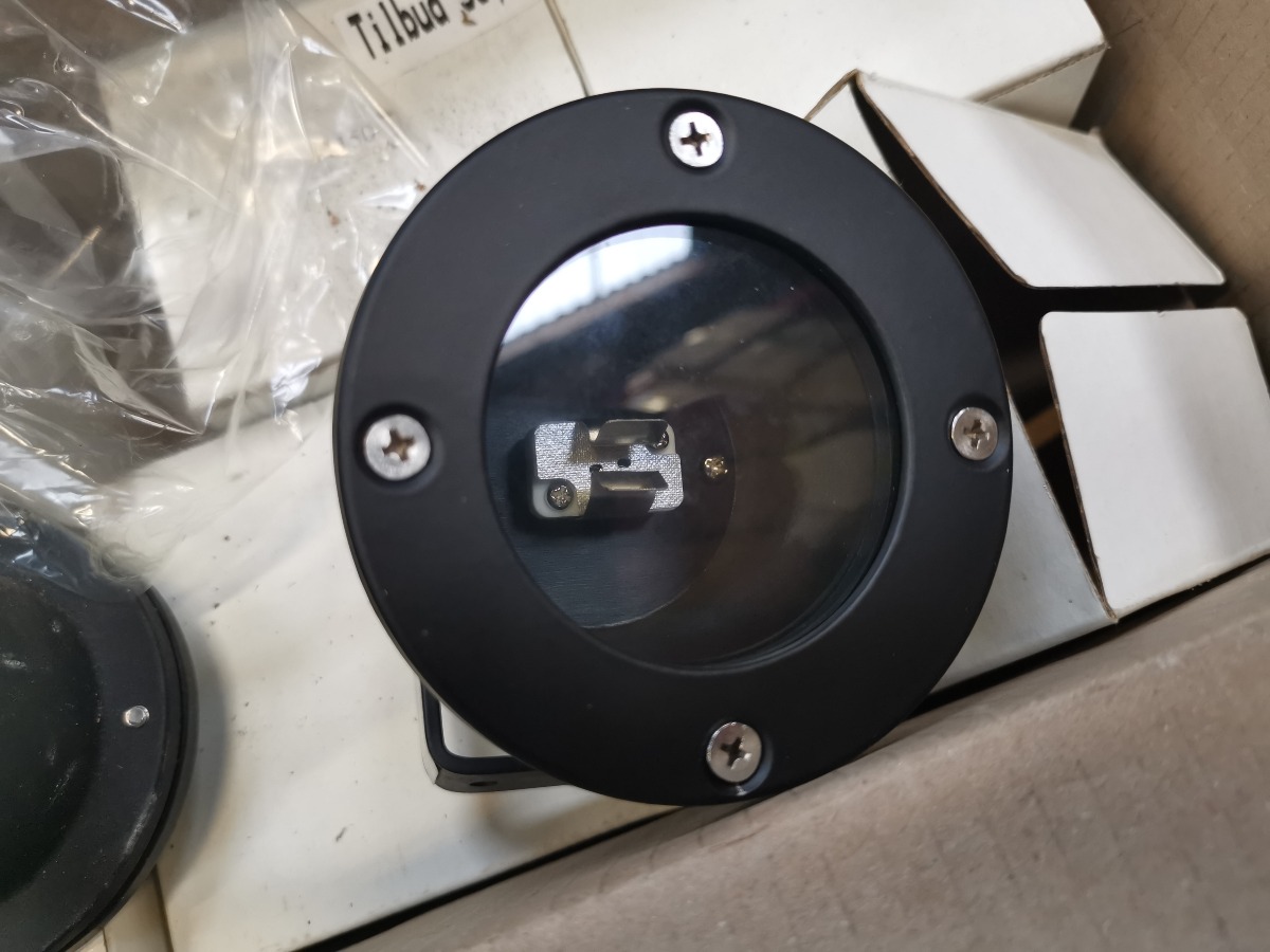 6 stk. vandtæt udendørslampe. Kun 1 med pære og ledningsmontering.