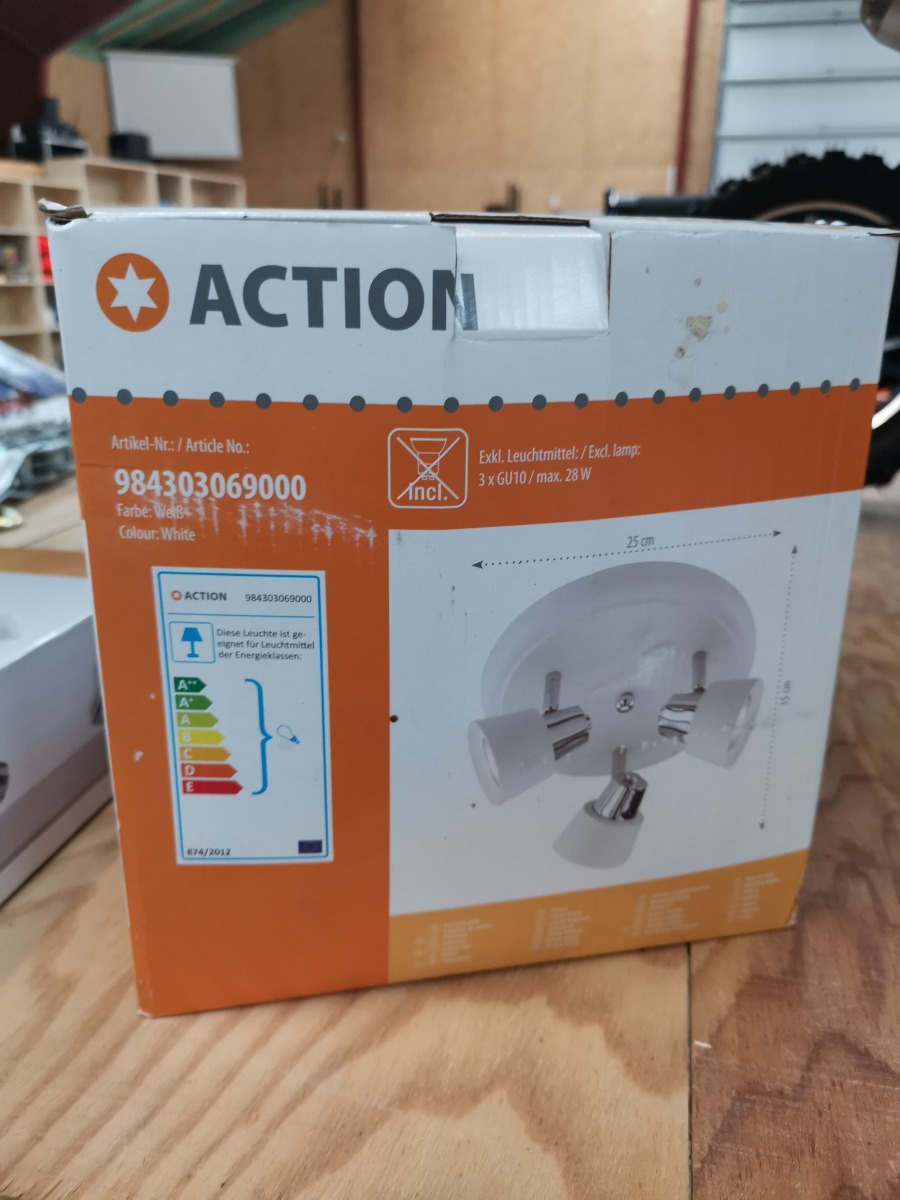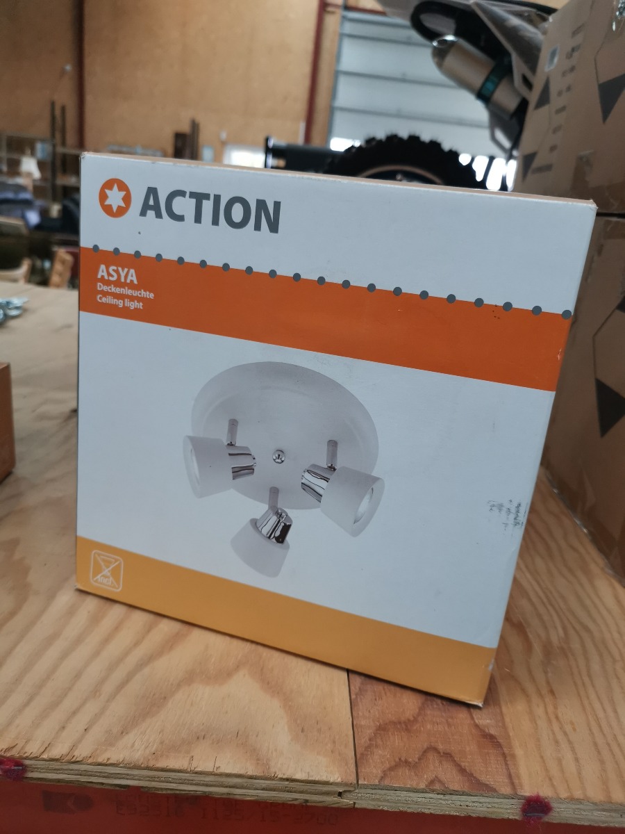 Action Asya loftspot. Rund loftspot med 3 lyskilder. Ubrugt og i origional embalage.