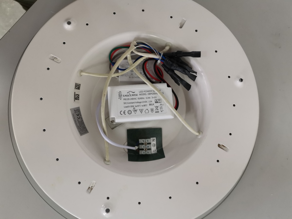 Action, Jana plafond LED med mulighed for rødt, grønt og blåt lys. 24W, 1740 Lumen og 3000 Kelvin. Fjernbetjening medfølger. H. 5, Ø. 40 cm. Ligger i original embalage.