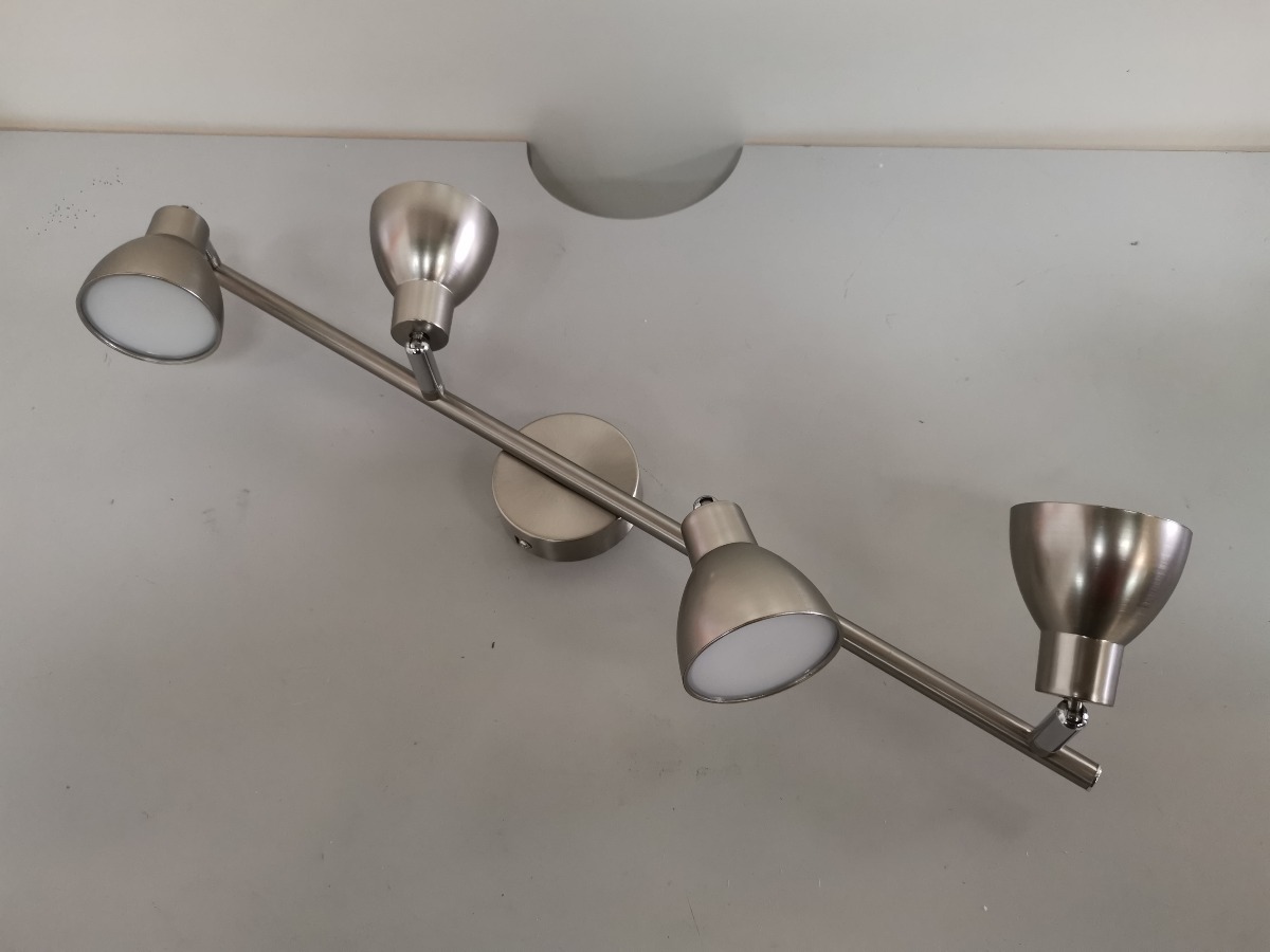 Action, Lester spotskinne LED med 4 lyskilder. 5W, 380 Lumen og 3000 Kelvin. stel af børstet stål. H. 16, B. 58 cm. Ligger i original embalage.