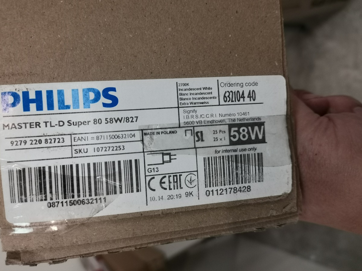 Philips TL-D Super 80 58W/827 lysstofrør. 8 stk. Liggende i papkasse.