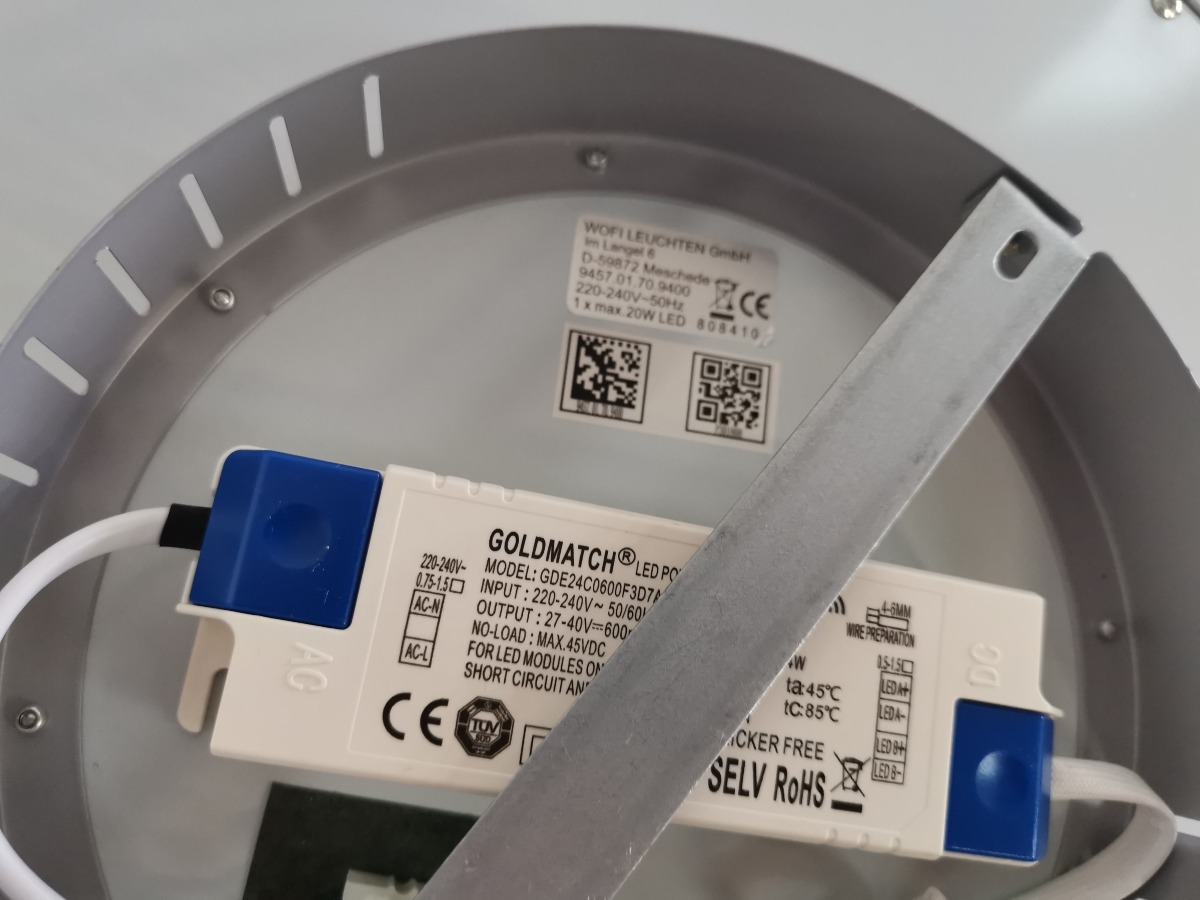 Wofi plafond. 20W LED. 1600 Lumen og 2900-6100 Kelvin. Med fjernbetjening. H. 5, Ø. 40 cm. Lampen ligger i origial embalage.