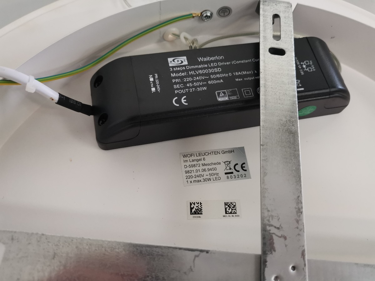 Wofi plafond. 30W LED, 2800 Lumen.3000 K. H. 12, Ø. 45 cm. Lampen ligger i origial embalage.