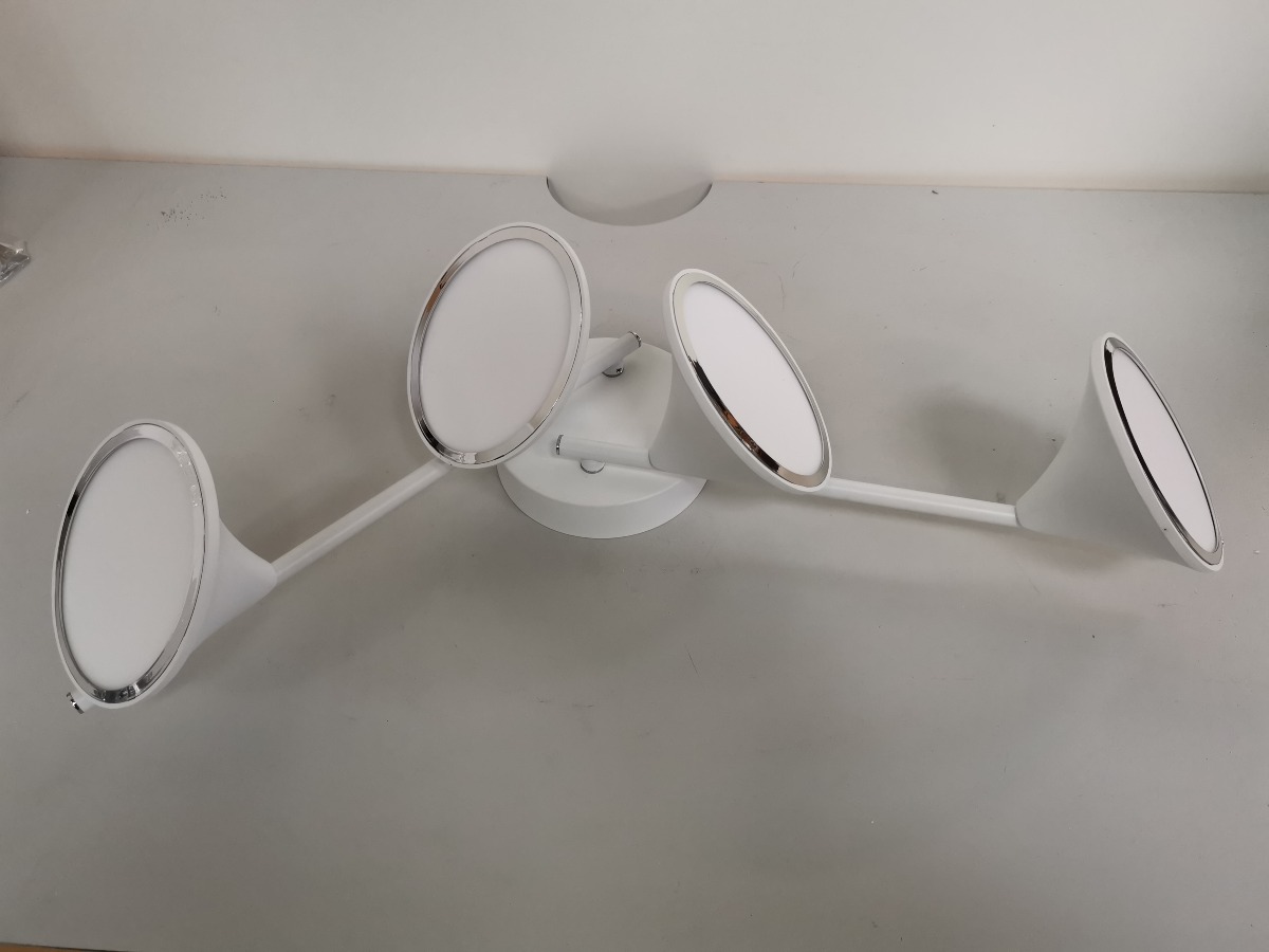 Wofi spotskinne med 4 lyskilder LED. Hvidlakeret. 28W, 2600 Lumen, 3000 Kelvin.  H. 17,5, B. 83 cm. Lampen ligger i origial embalage.