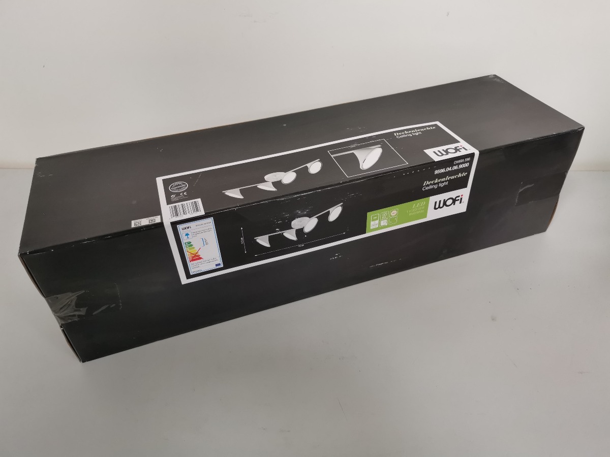 Wofi spotskinne med 4 lyskilder LED. Hvidlakeret. 28W, 2600 Lumen, 3000 Kelvin.  H. 17,5, B. 83 cm. Lampen ligger i origial embalage.