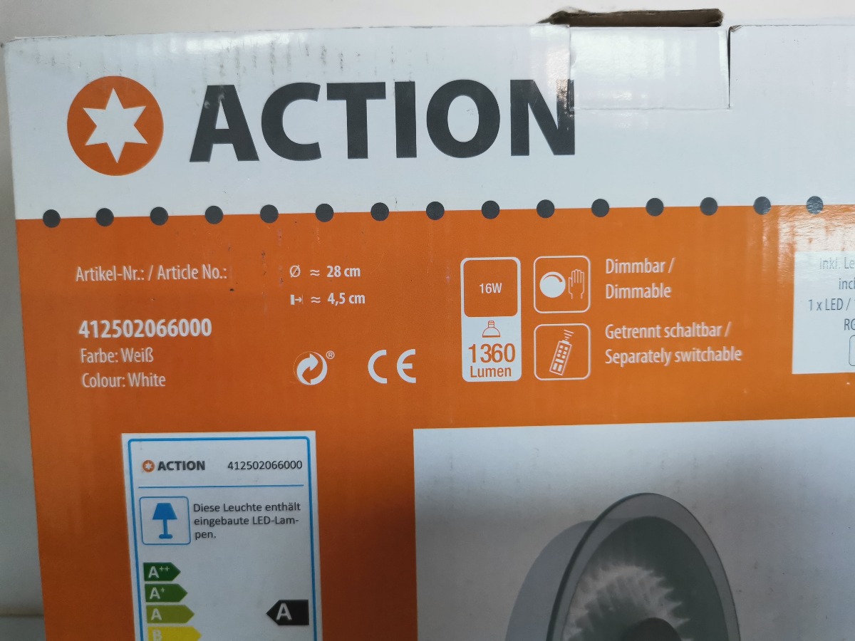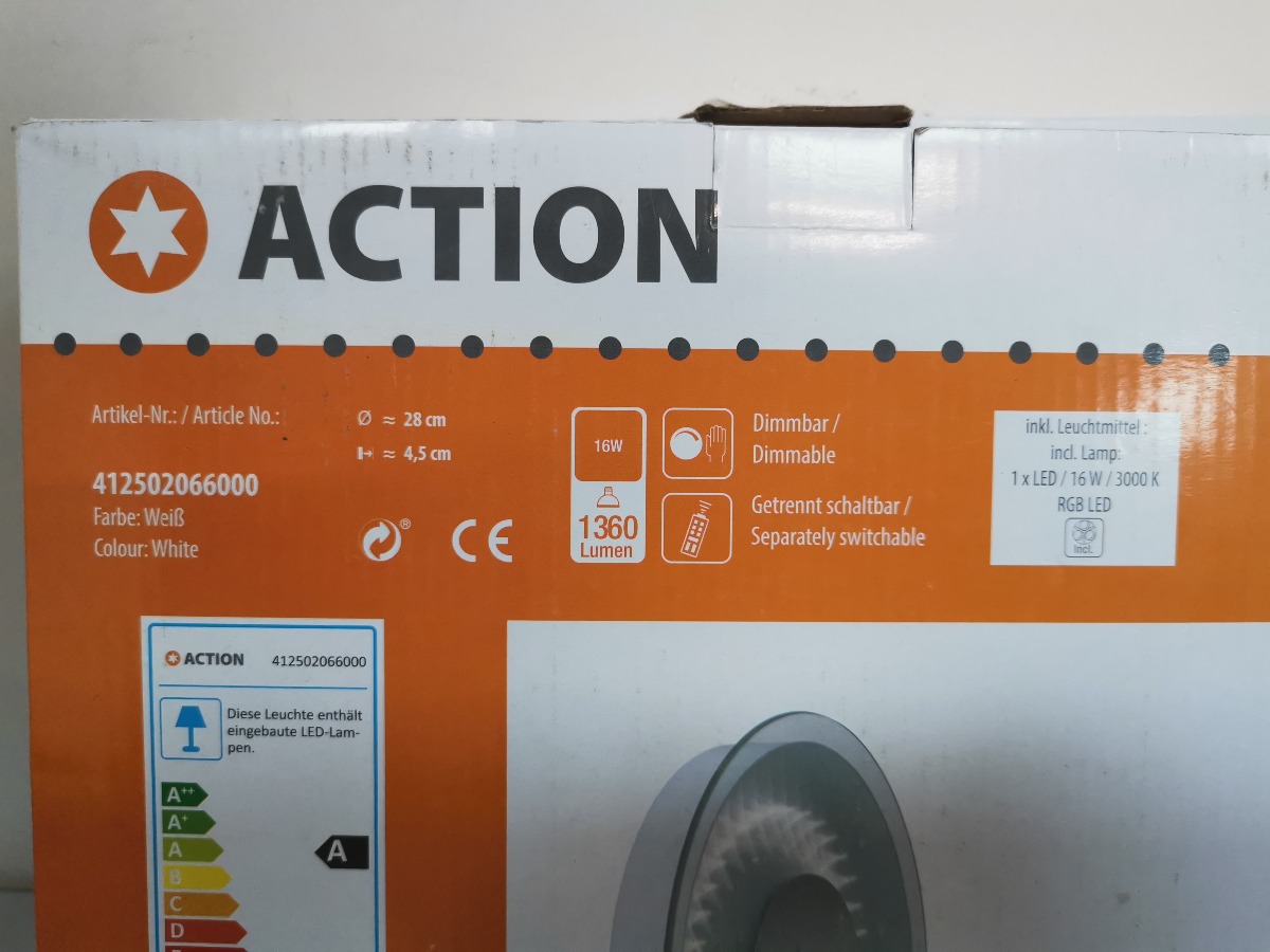 Action Jana væglampe LED med mulighed for farveskift mellem hvid. rød, grøn og blå. Ø. 28, H. 4,5 cm. Ubrugt og i original embalage.