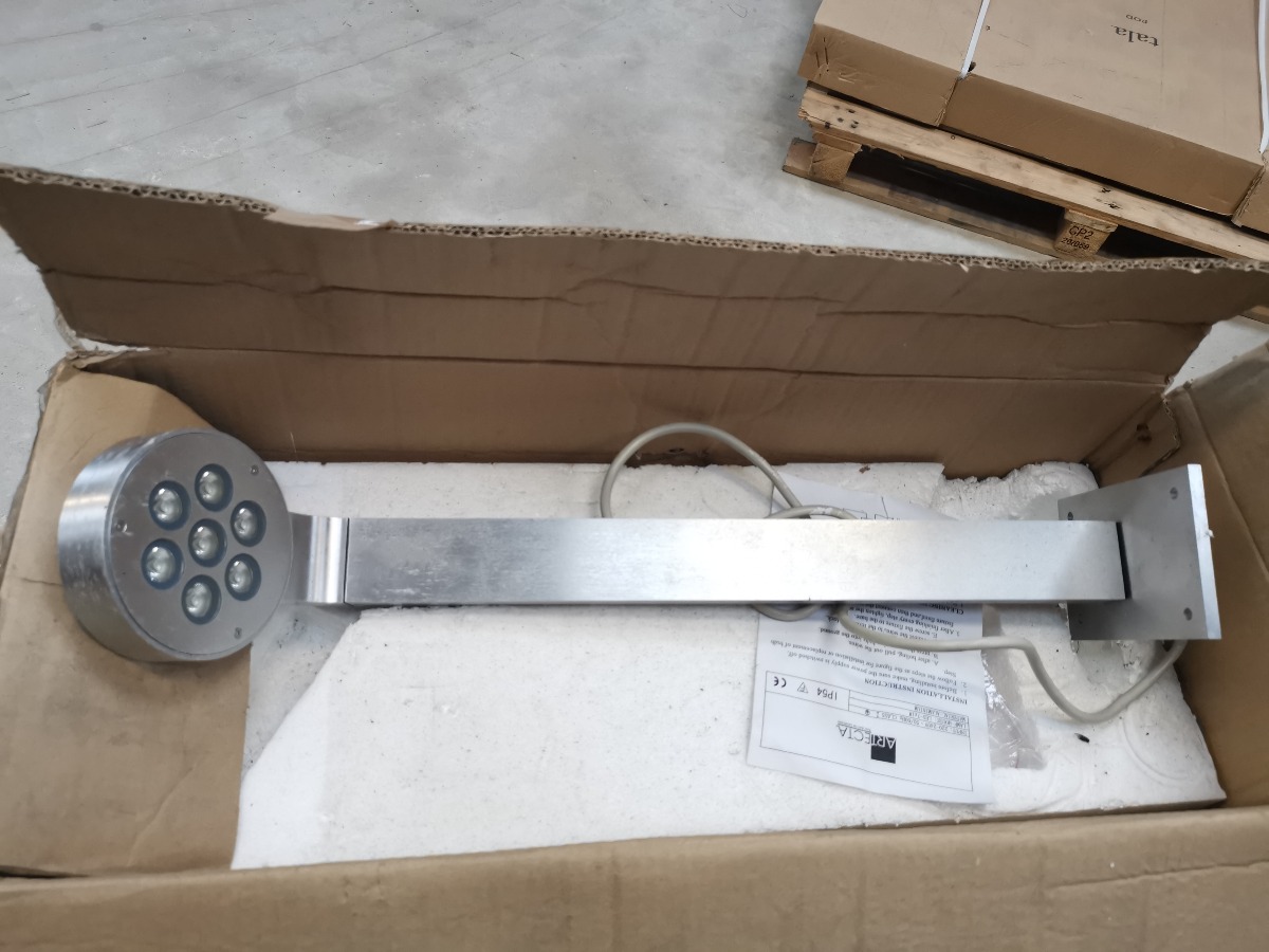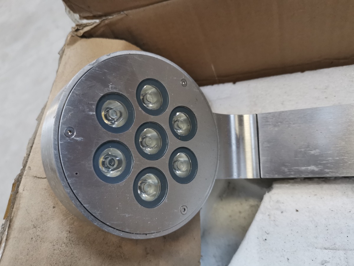 Artecta Colorado-60 havelampe af børstet alminium med 7 x 1W warm white LED. H. 60 cm. Fremstår med lidt patina.