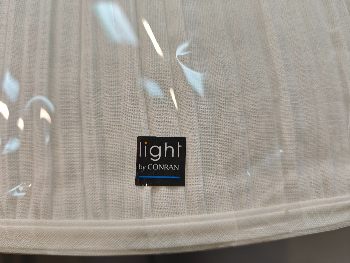 James Conran Pendel monteret med lyst stof. Opak inderskærm af plast. Ø. 45 cm.