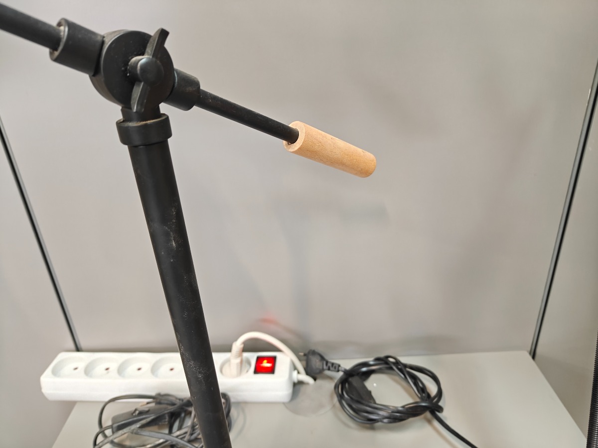 Scarlett bordlampe fra Cave Home af matsort metal og træ. Mindrebrugsspor.