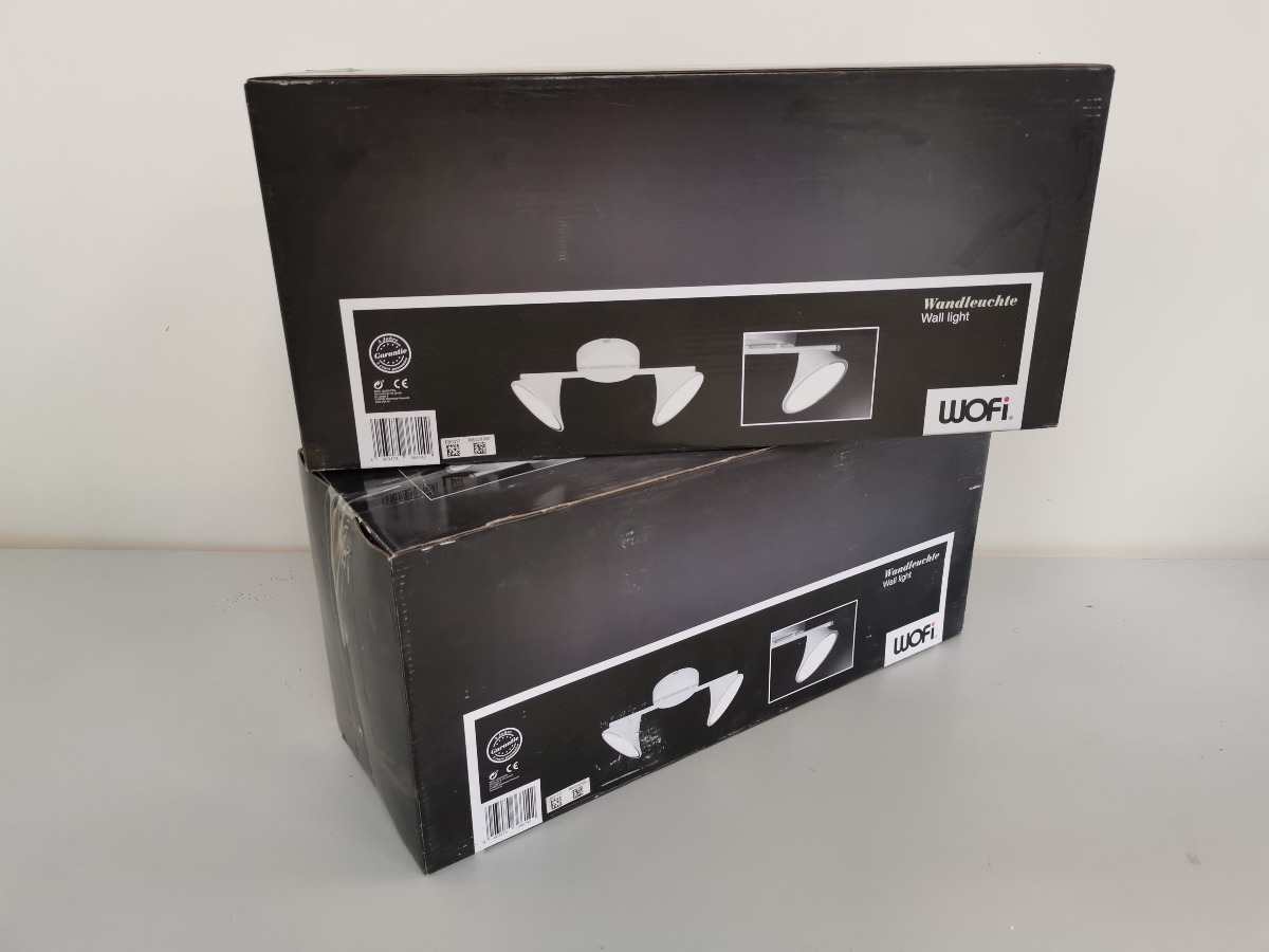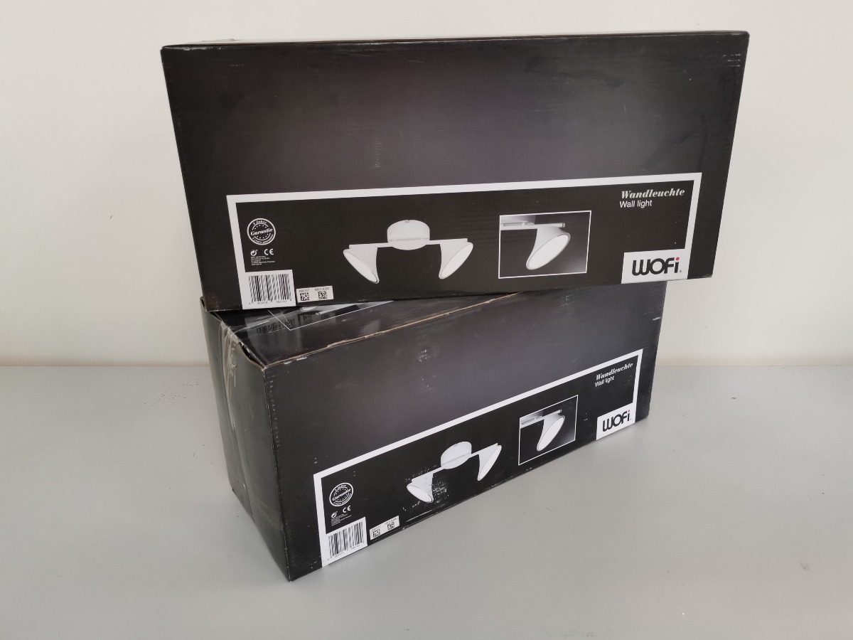 2 Wofi spotskinner med 2 lyskilder, LED, hvidlakeret. 14W, 1300 Lumen, 3000 Kelvin. H. 18, B. 40 cm. Varerne ligger i original embalage.