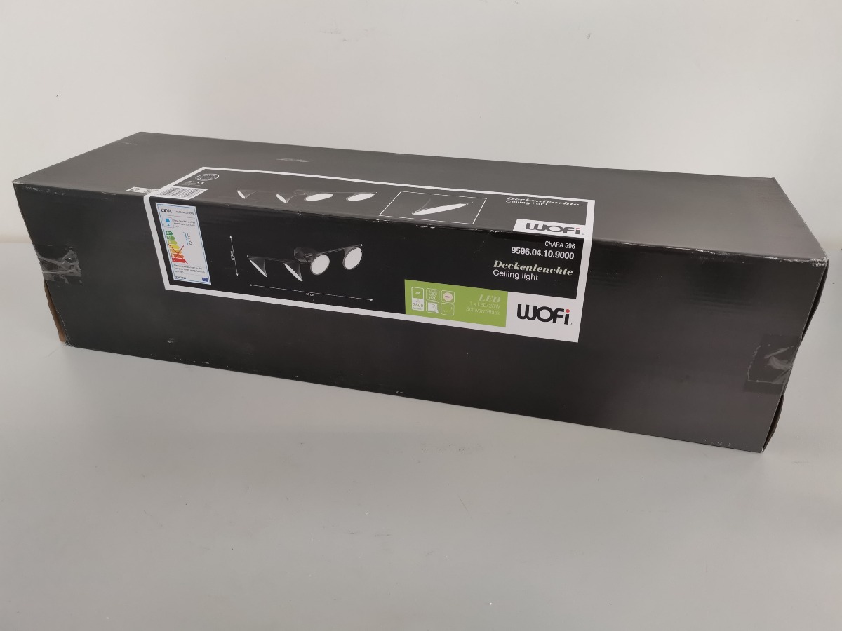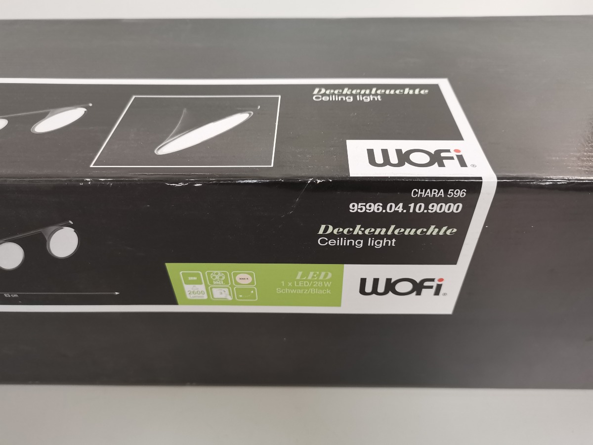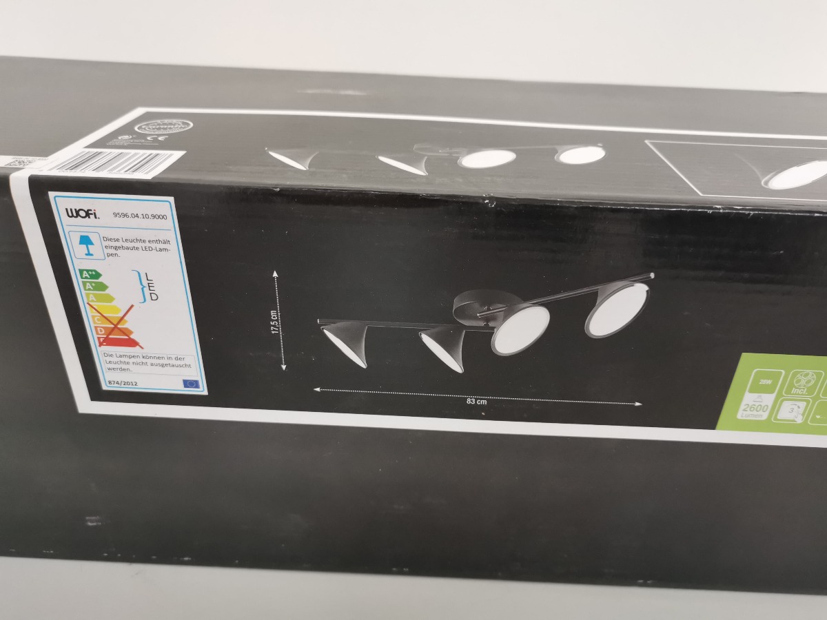 Wofi spotskinne med 4 lyskilder LED. Sortlakeret. 28W, 2600 Lumen, 3000 Kelvin.  H. 17,5, B. 83 cm. Lampen ligger i origial embalage.