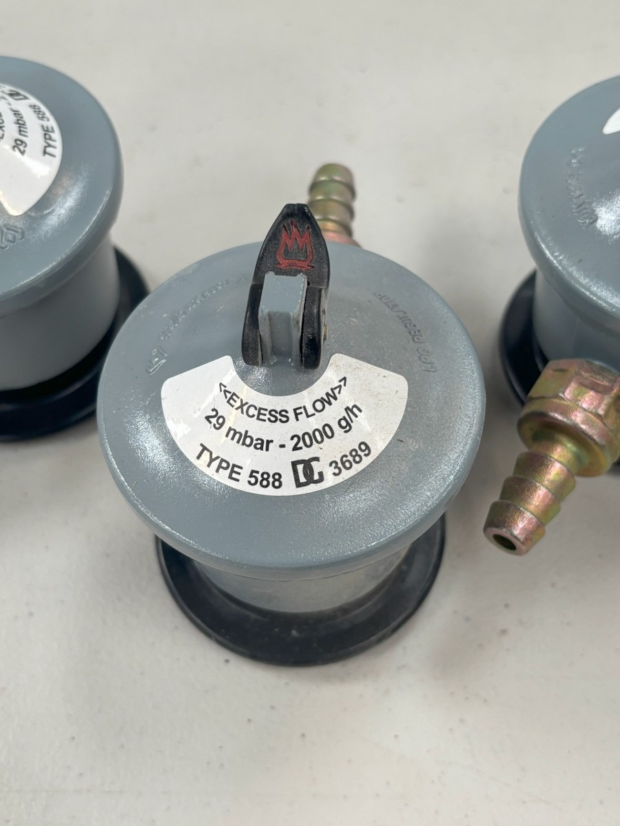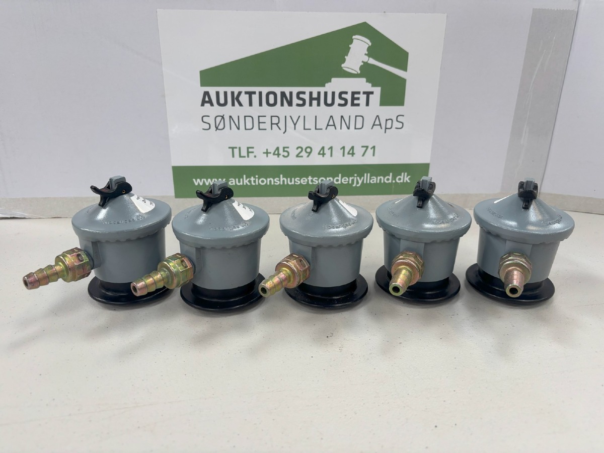 5 x Gasregulatorer. Excess flow. 29 mbar – 2000 g/h. Type 588. Ubrugt og oprydning fra dødsbo