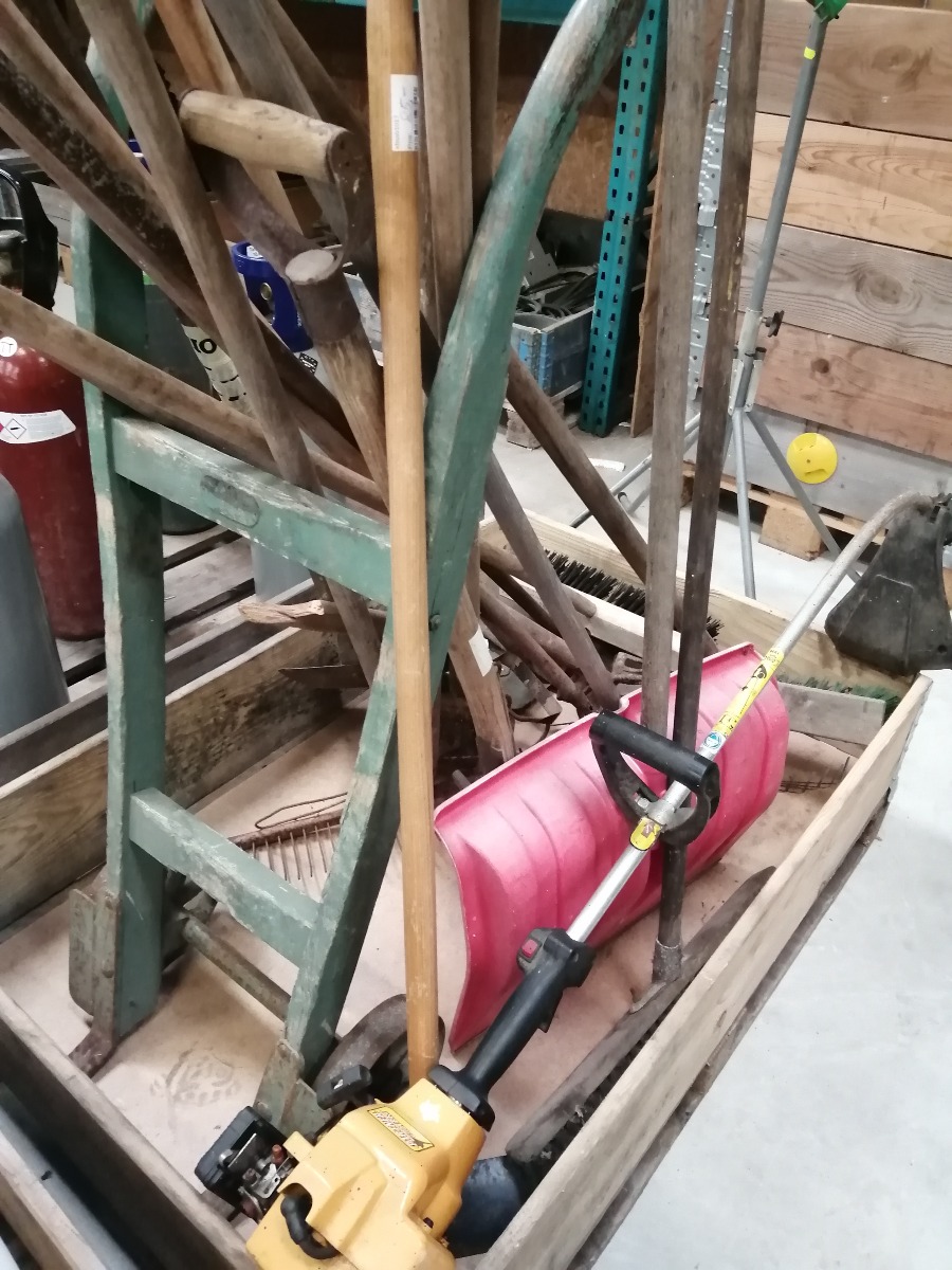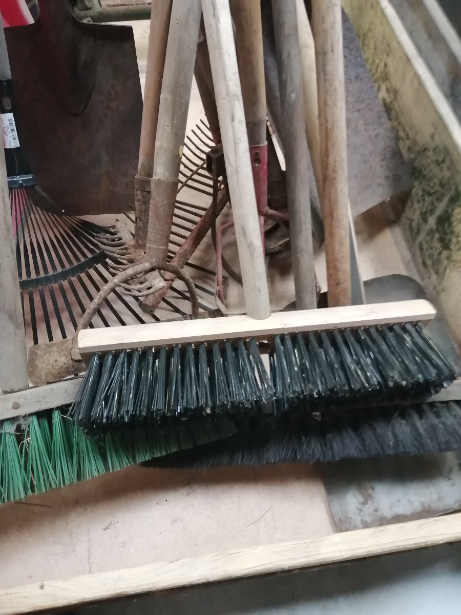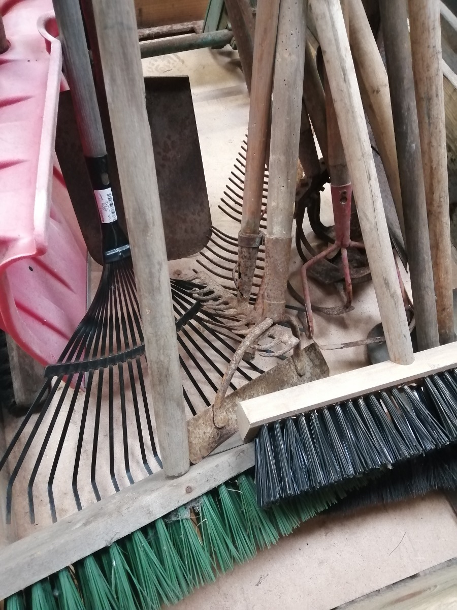 Diverse haveredskaber - koste, skovl, sneskovl mm. Brugte.