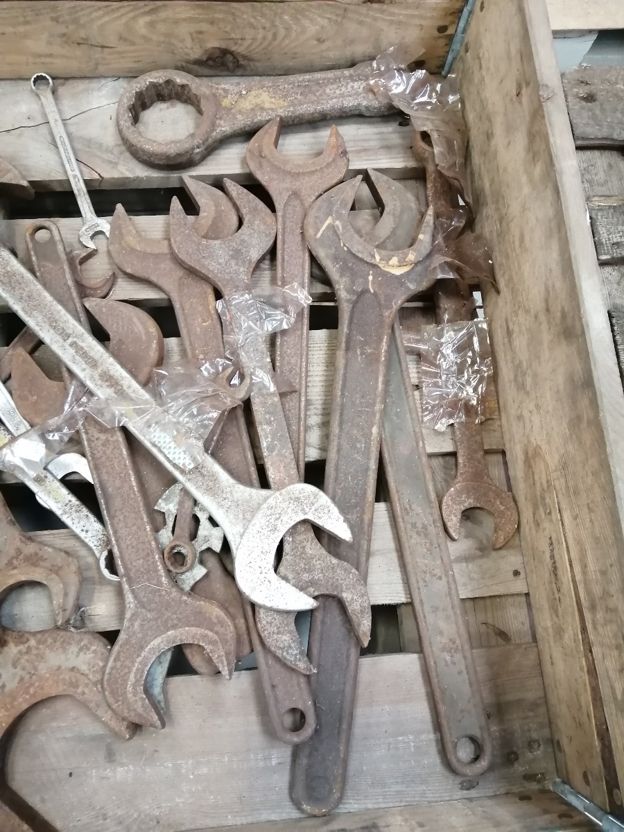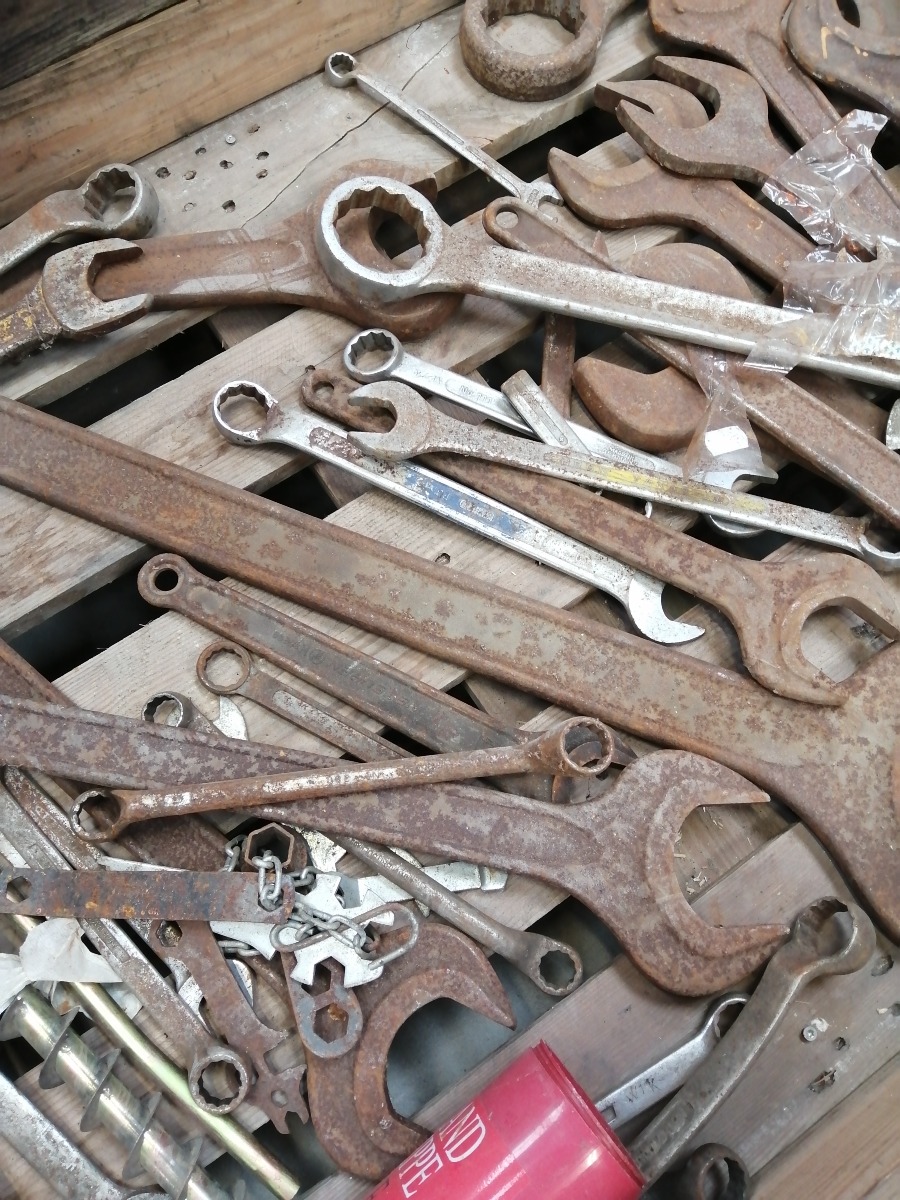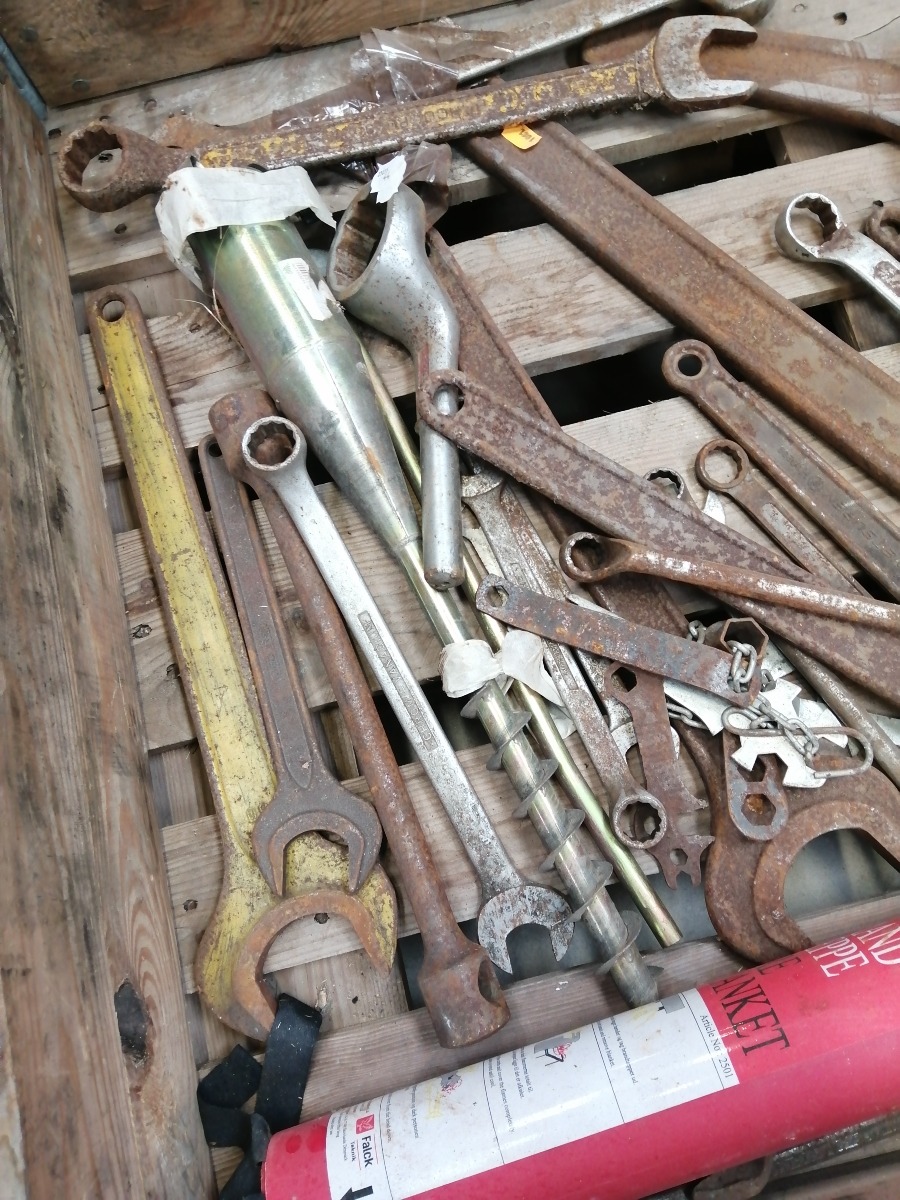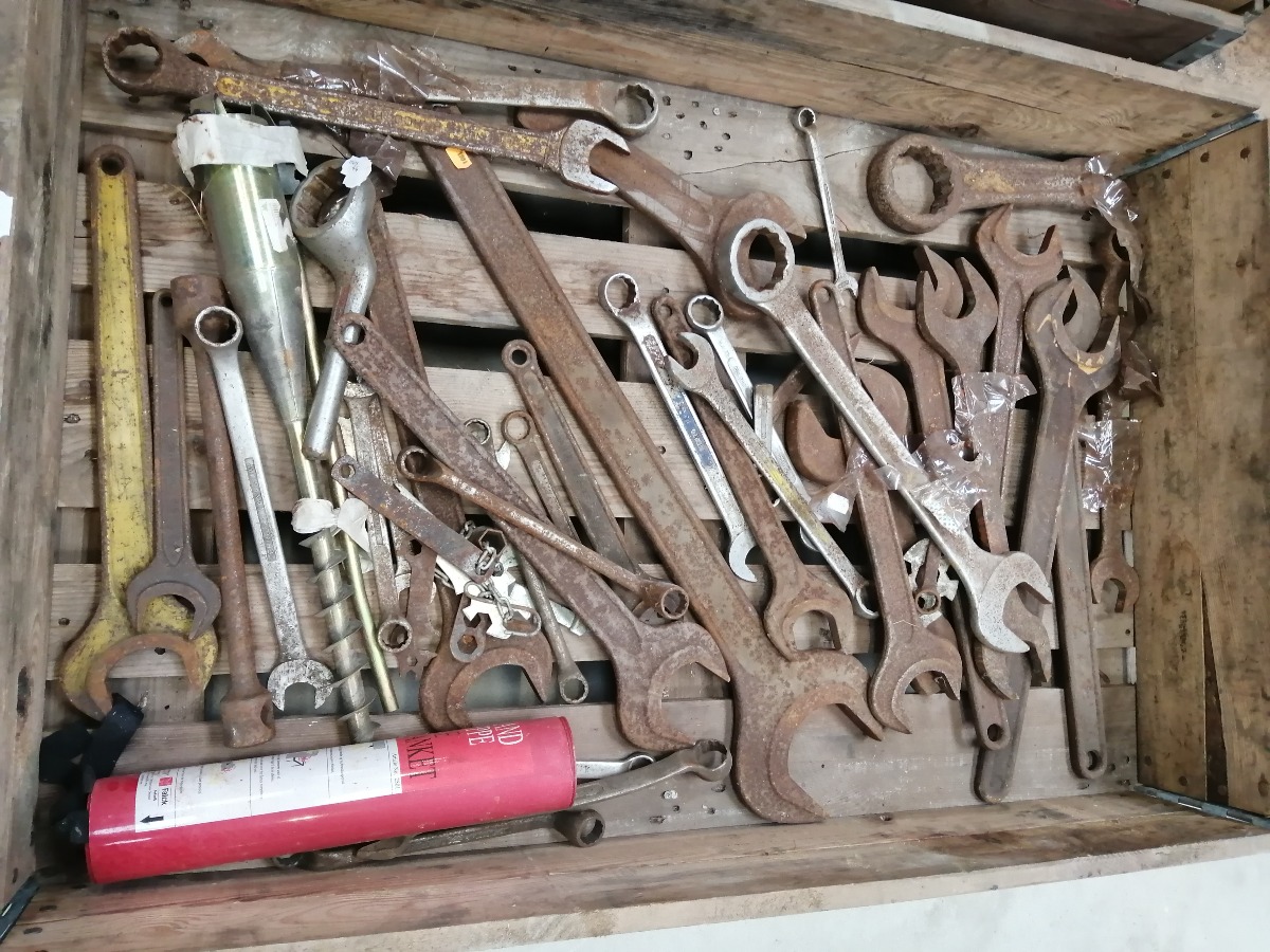 Diverse skruenøgler og andet håndværktøj. Oprydning fra dødsbo