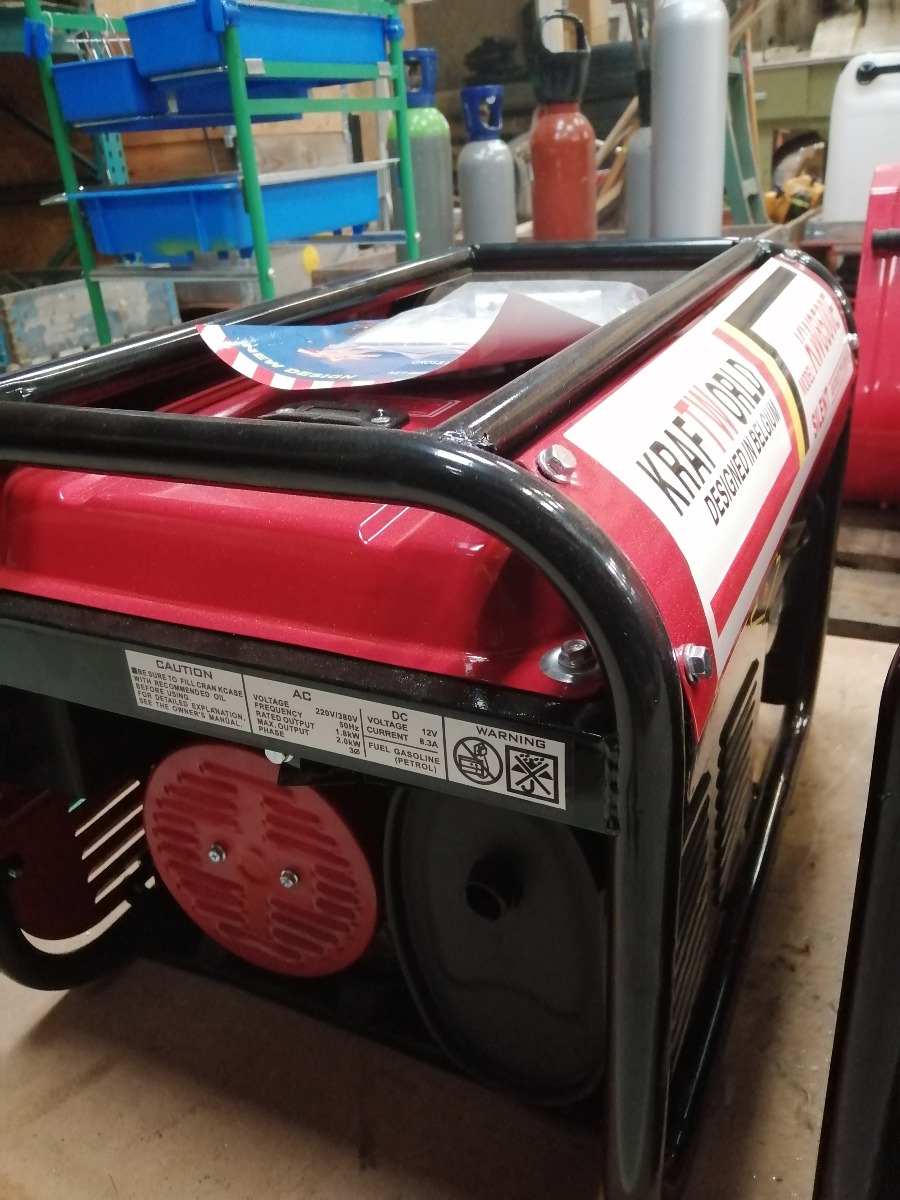 Kraftworld Benzin generator - KW8500. 1,8 KW. 50HZ. Vejer 40 kg. Silent model. Med 4 stk. stik (3 stk. AC220V og 1 stk. AC380V.) Voltmeter måler og sikring. Uden emballage.