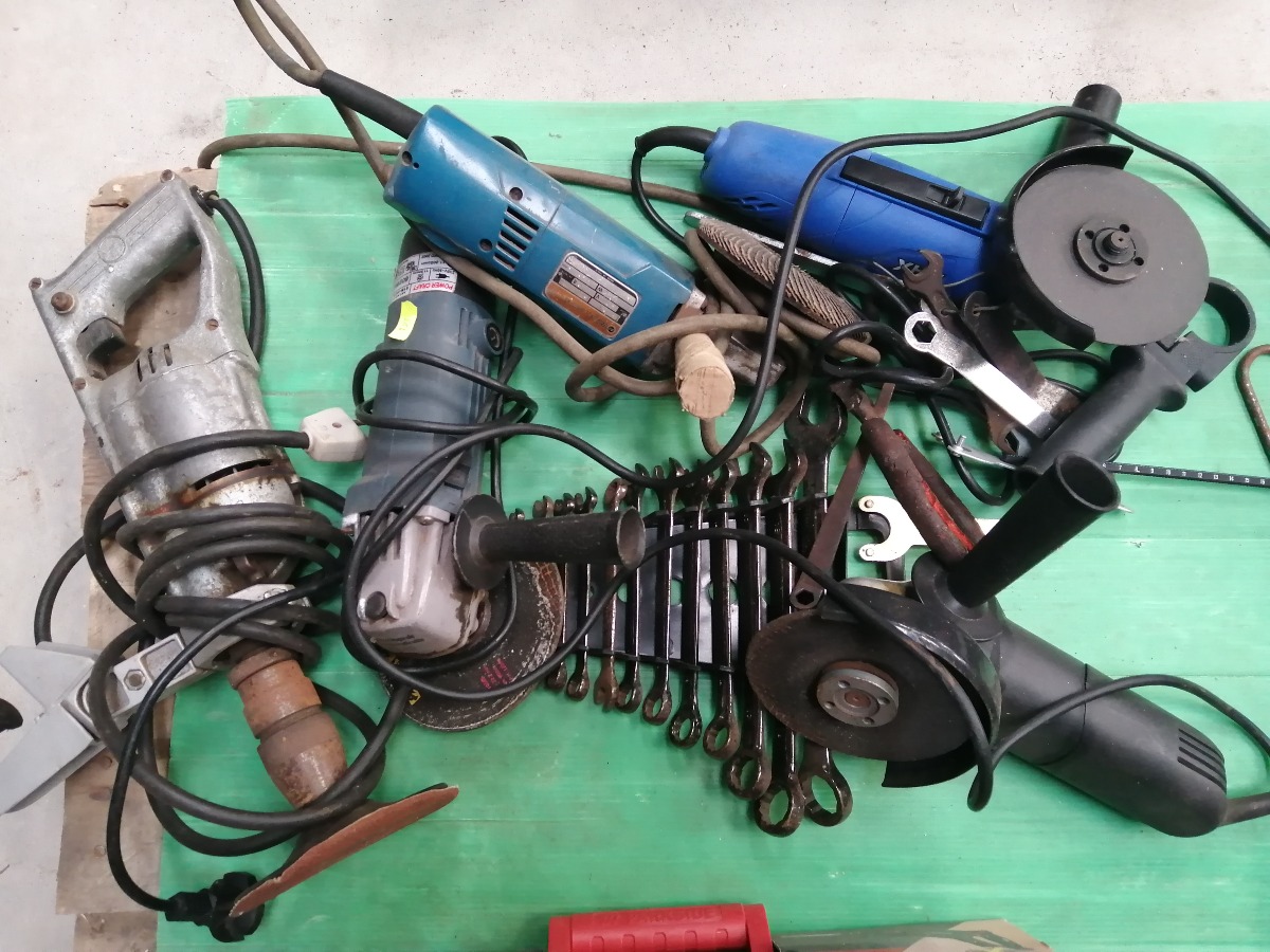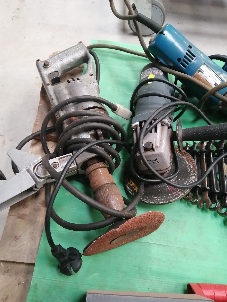 Diverse værktøj - vinkelslibere, skruenøgler, pudsere mm. Brugte.