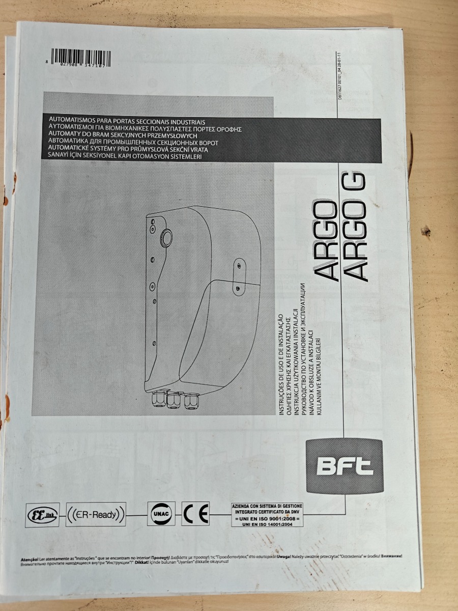 BFT Argo G portautomatik med fjernbetjening, beregnet til porte op til 20 m2, enheden er original embalage, ubrugt